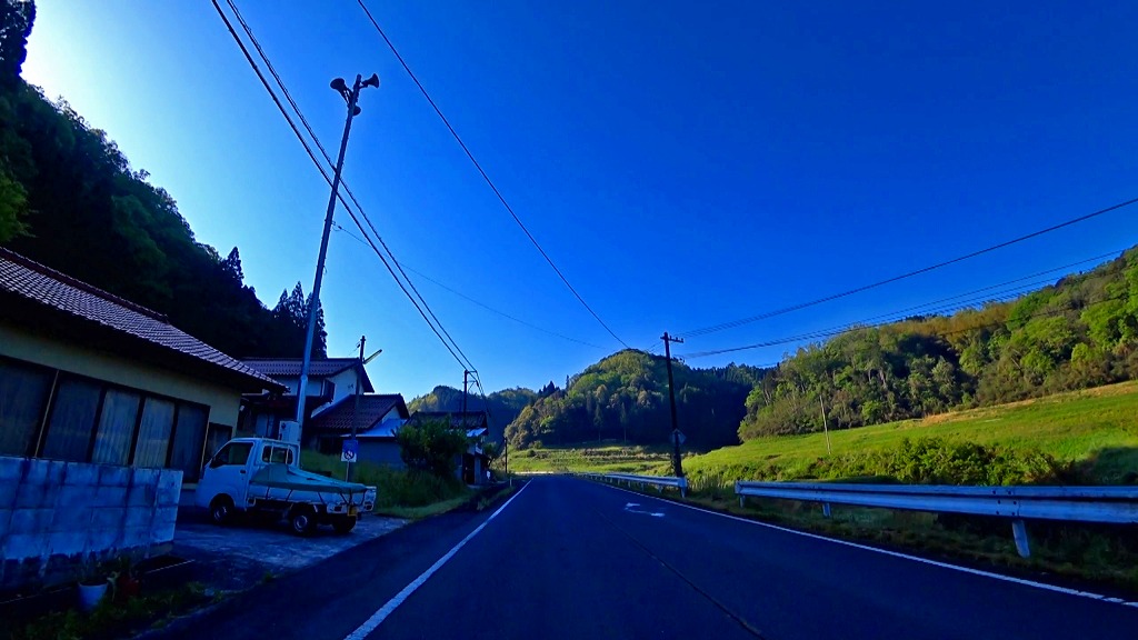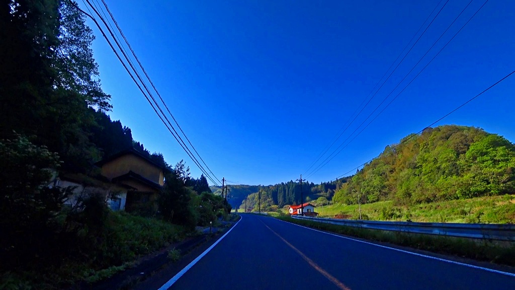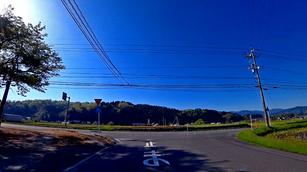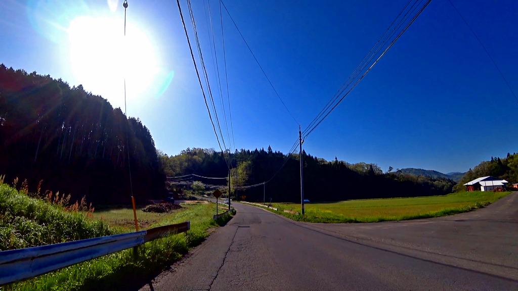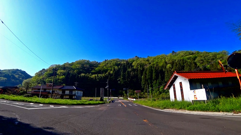 (S)スタートは島根県雲南市にある島根県道53号大東東出雲線との交差点(信号なし)から(01:46)