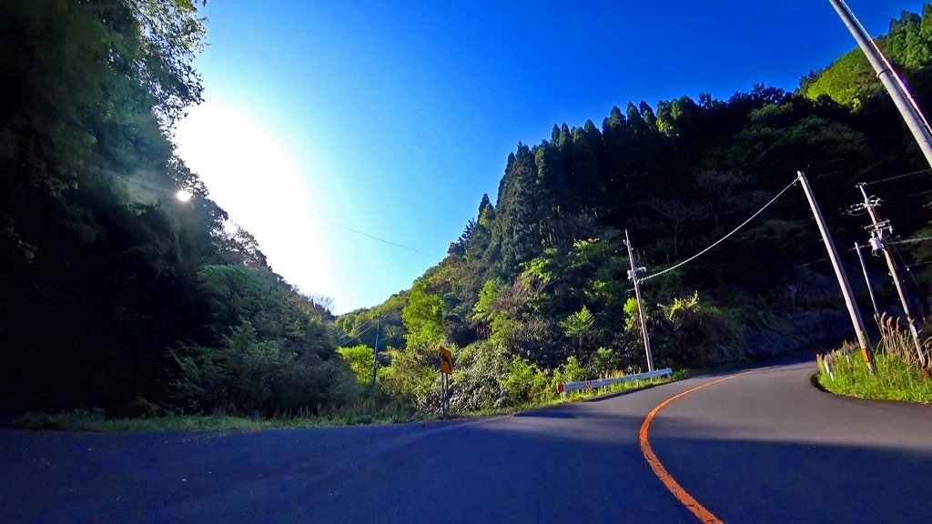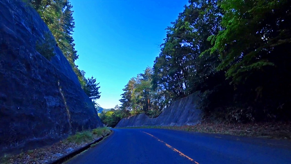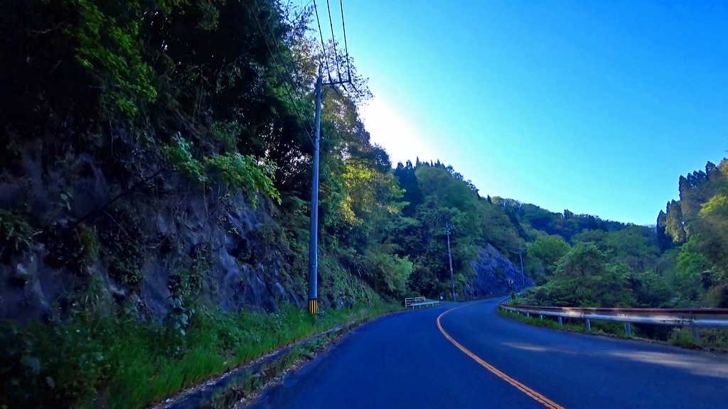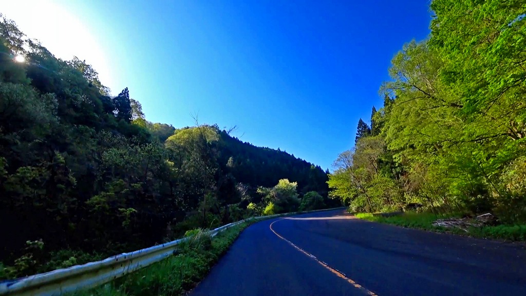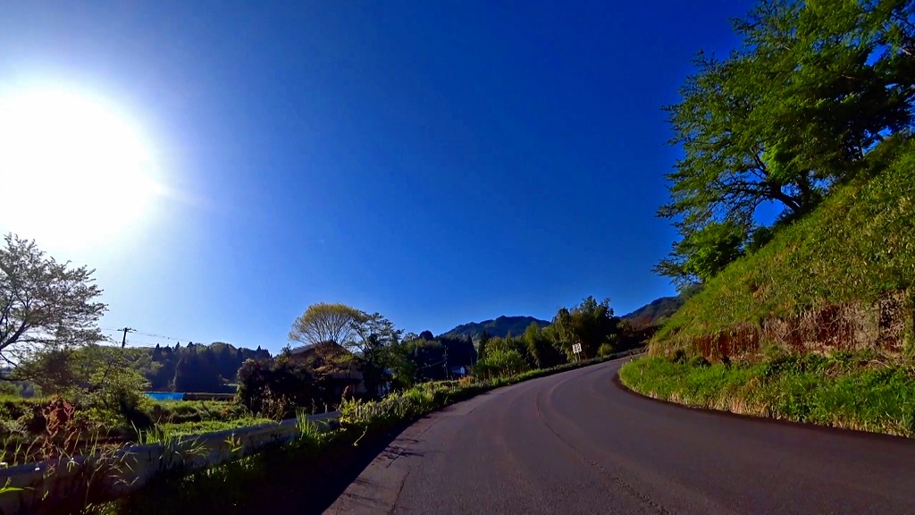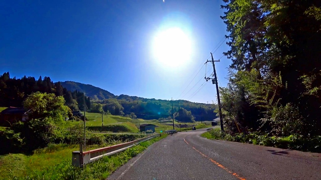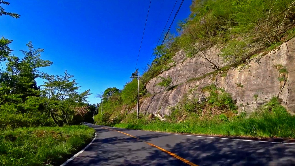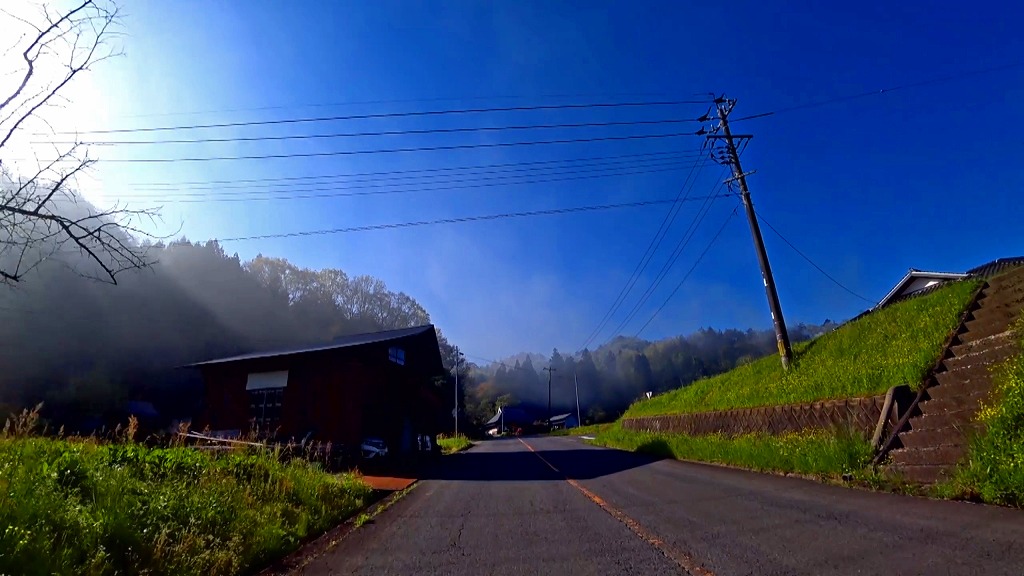 集落を抜ける道は長閑で絵になる様な風景。そして山道に入るとこれまでの農道とは違い、結構な勾配とカーブの続く道で楽しく走る事が出来ました。