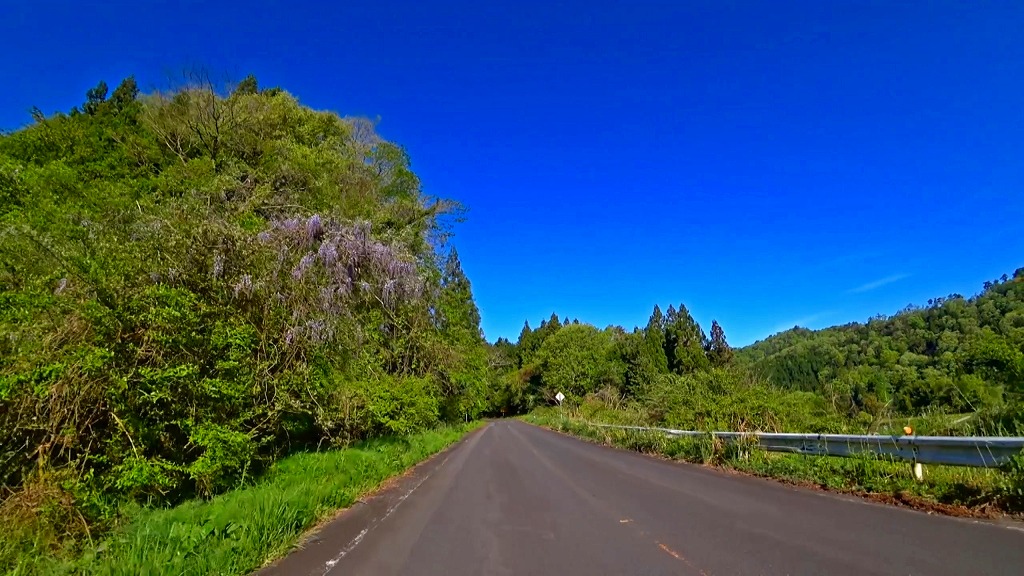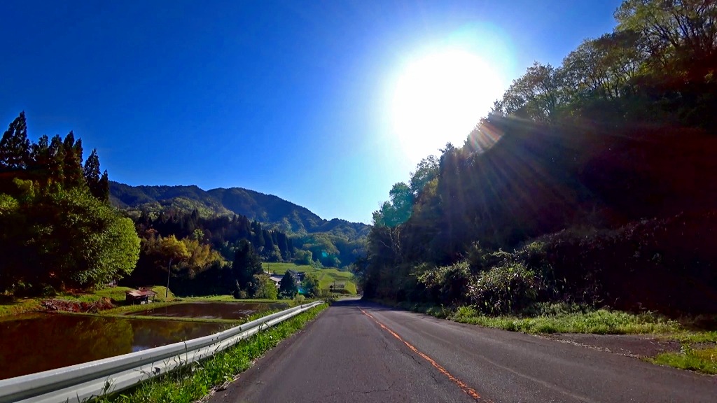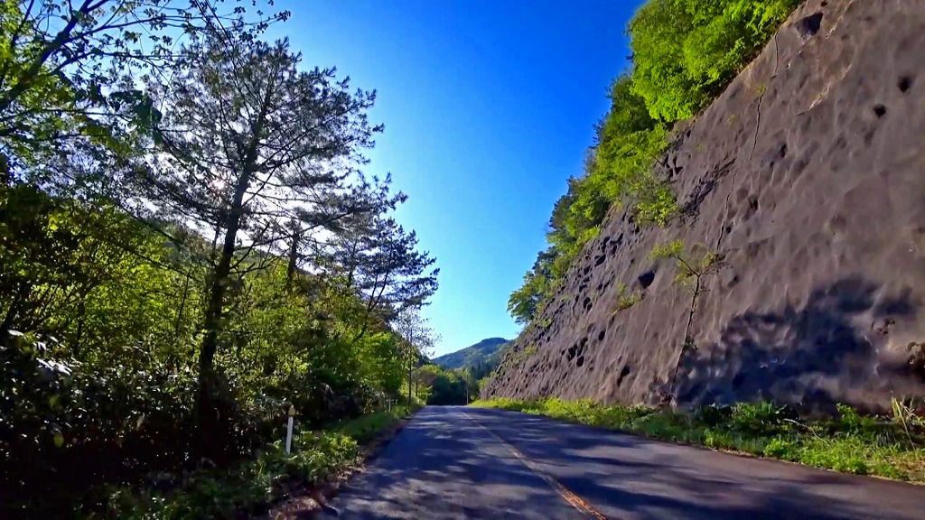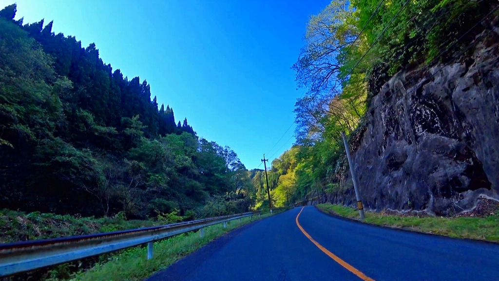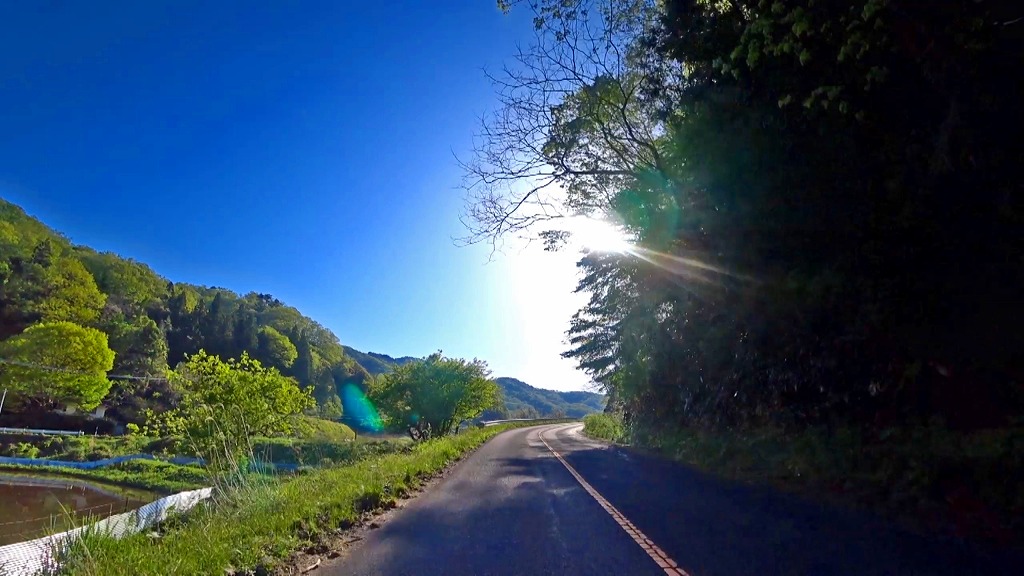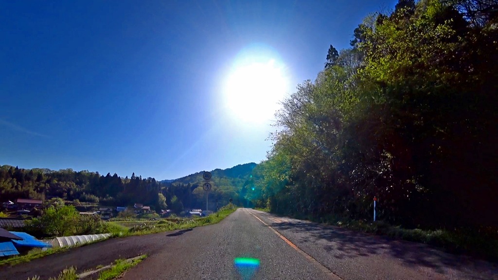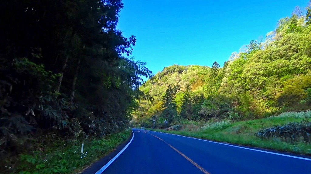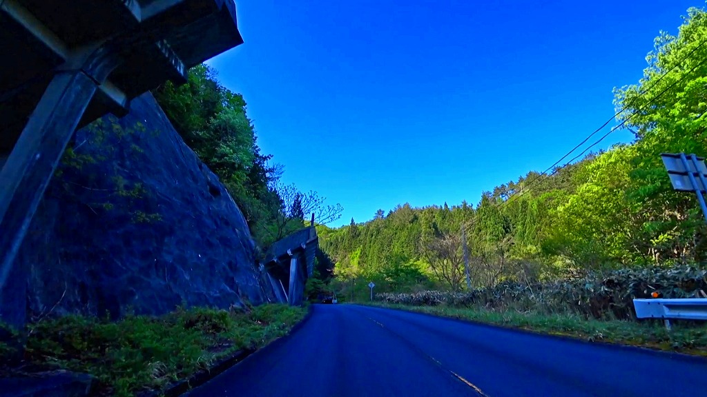 集落を抜ける道は長閑で絵になる様な風景。そして山道に入るとこれまでの農道とは違い、結構な勾配とカーブの続く道で楽しく走る事が出来ました。
