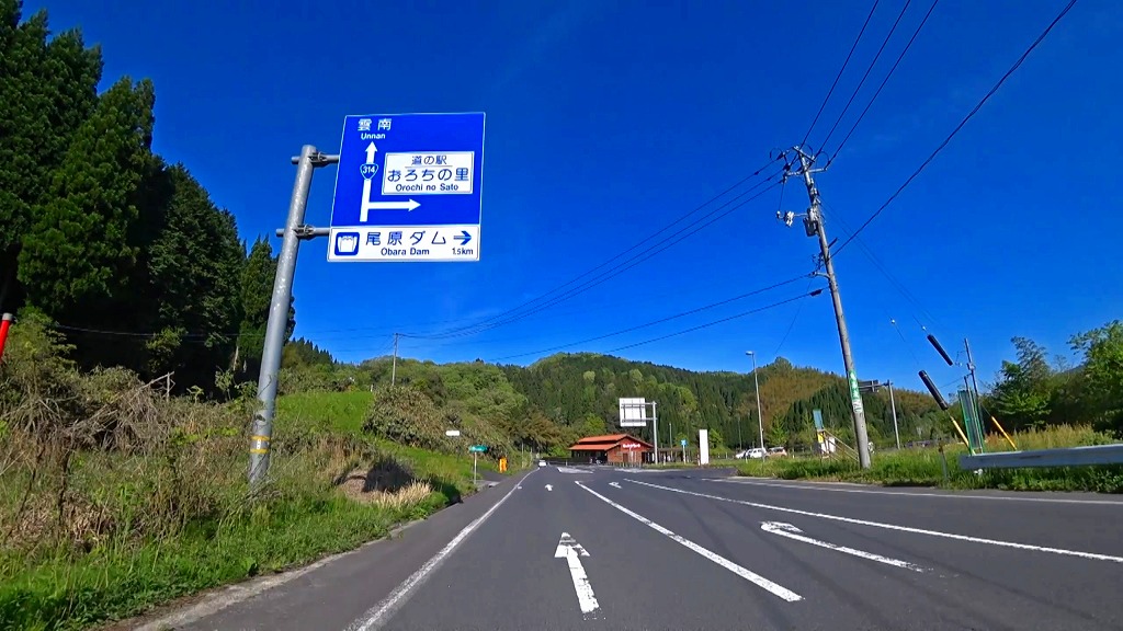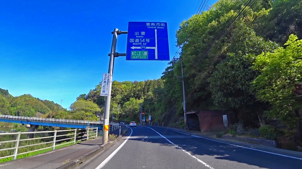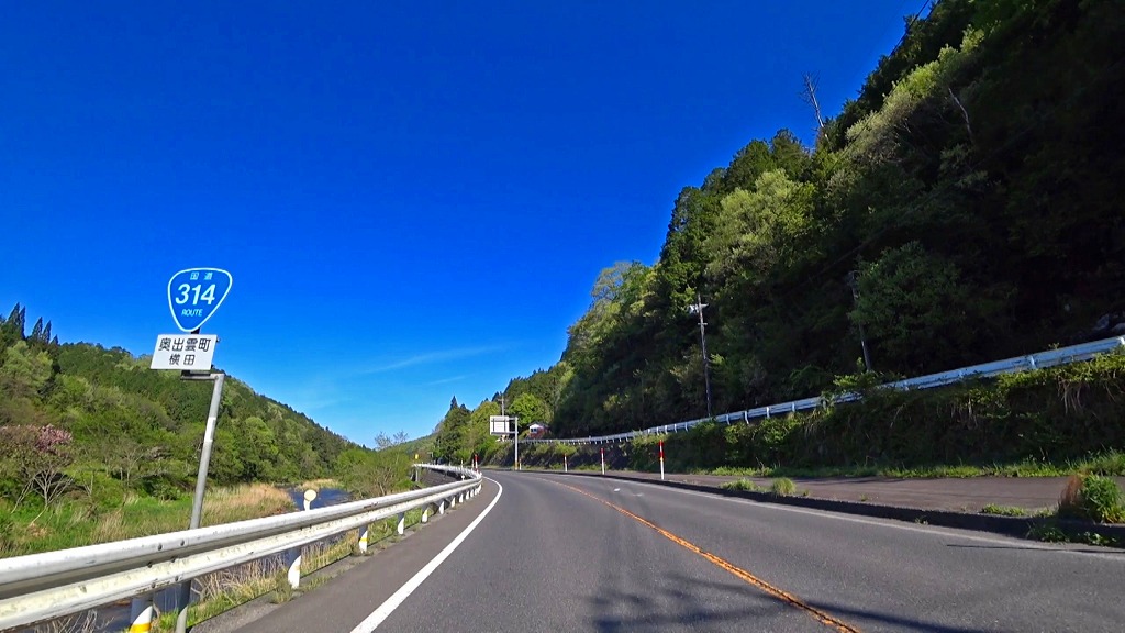 今回はこの国道314号を島根県仁多郡奥出雲町下横田から斐伊川に沿って走り、雲南市にある国道54号、島根県道26号出雲三刀屋線との交差点までの約33.5kmのドライブコースです。