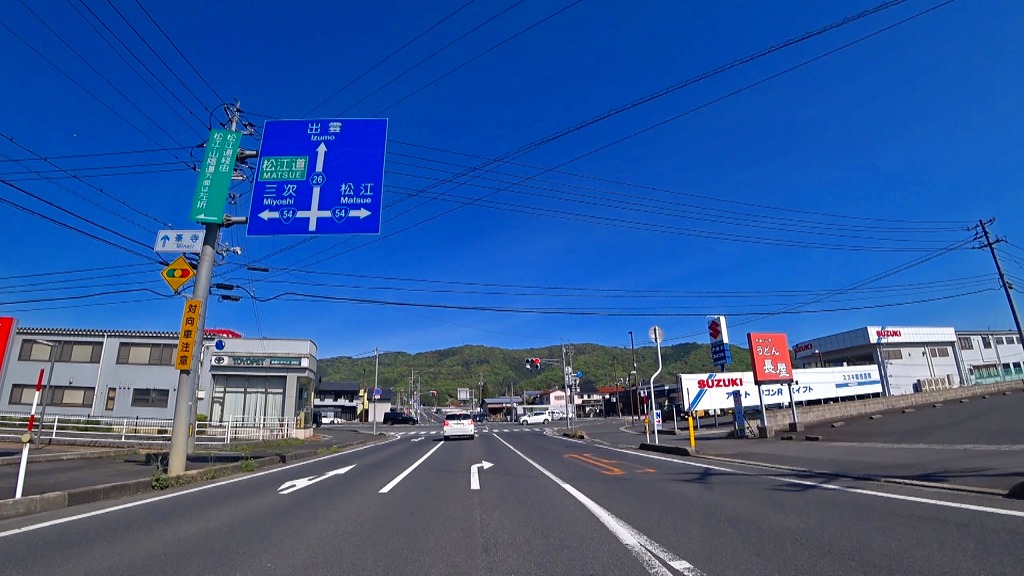 最後は島根県雲南市にある国道54号、島根県道26号出雲三刀屋線との交差点(信号あり)にて(G)ゴール。(36:05)