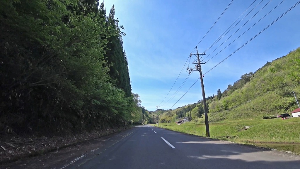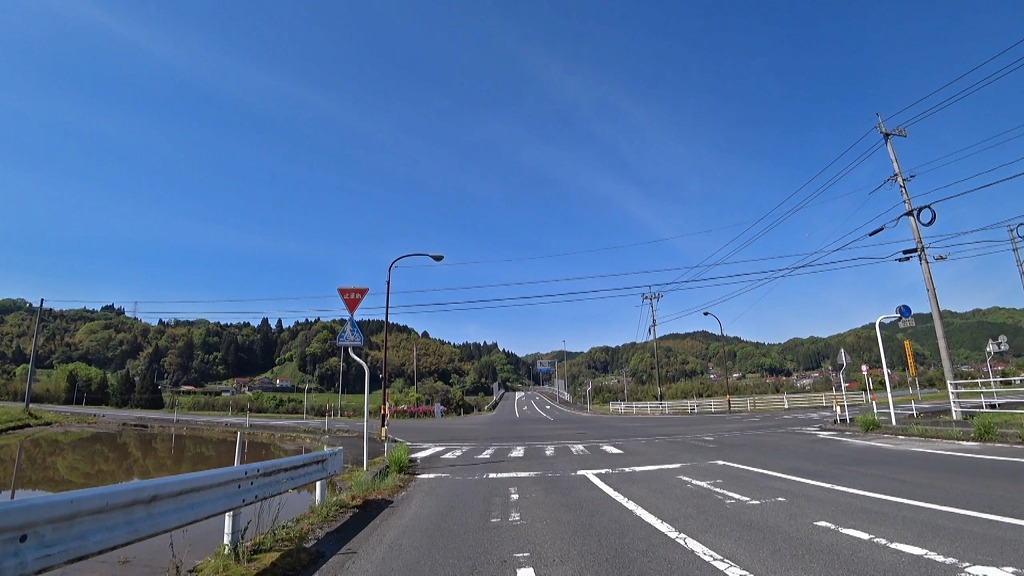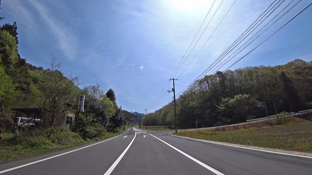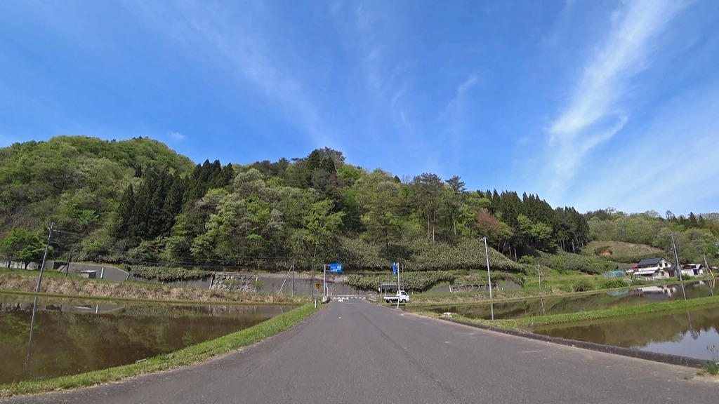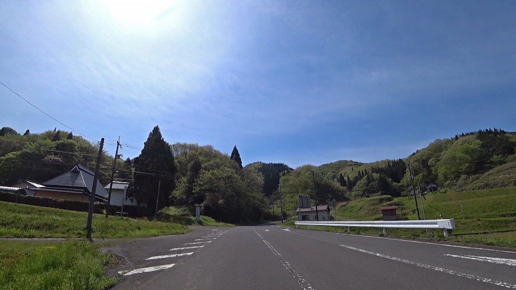 長閑な景色を進んで行くと島根県道40号川本波多線(島根県道325号佐田八神線)とのN交差点7(信号なし)が現れます。(50:51)