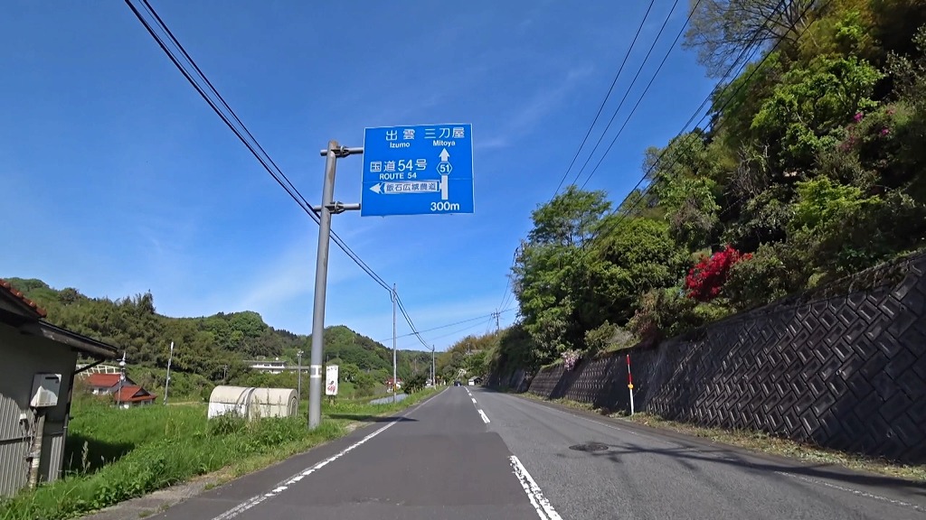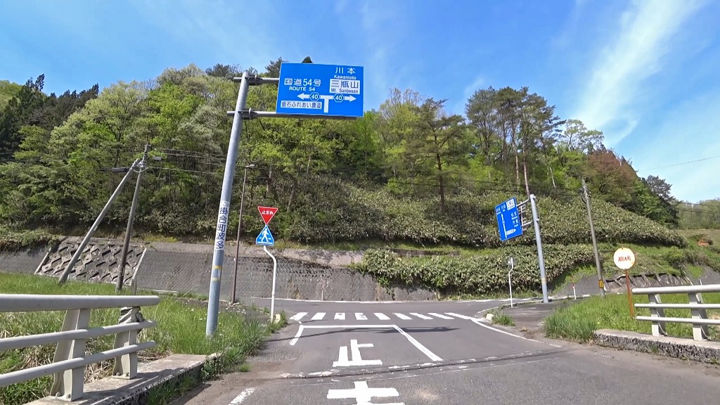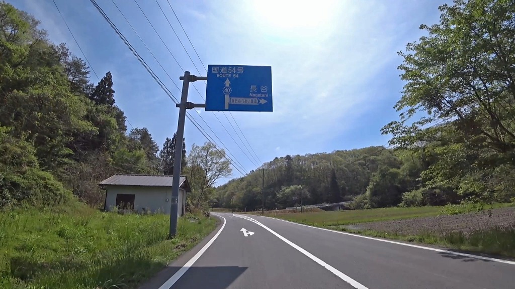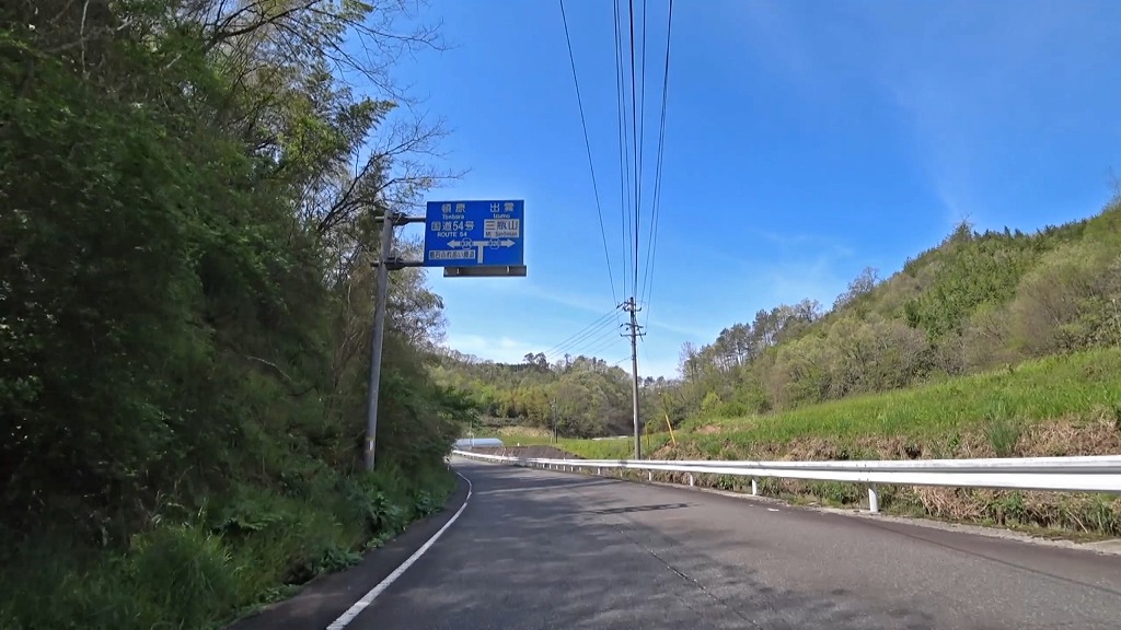 すると国道54号とのI交差点5(信号なし)が現れます。(29:04)