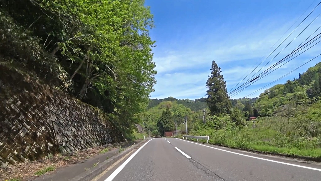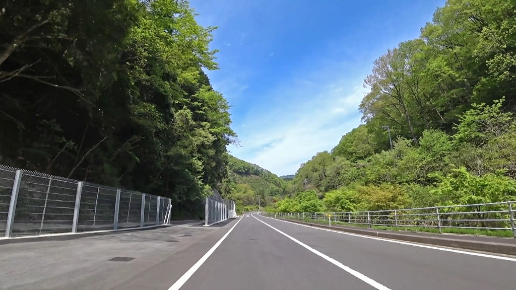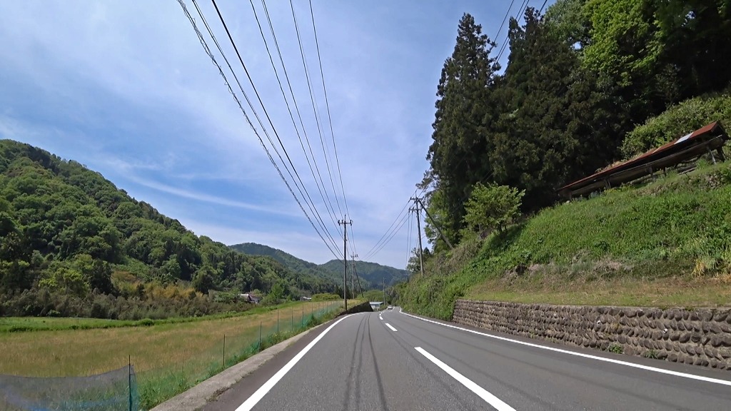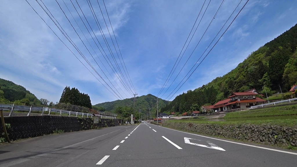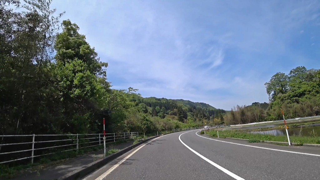 引き続き片側一車線の道。車幅が狭くならず走りやすい印象。