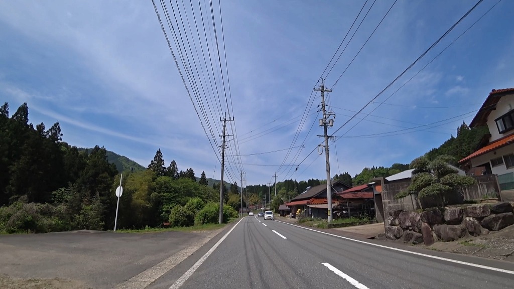 (S)スタートは島根県飯石郡飯南町にある島根県道55号邑南飯南線との交差点(信号なし)から(01:39)