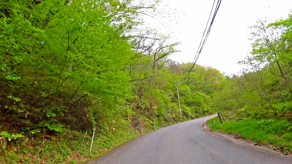 更に登って行くと、センターラインが無くなり、やや細い道へ。