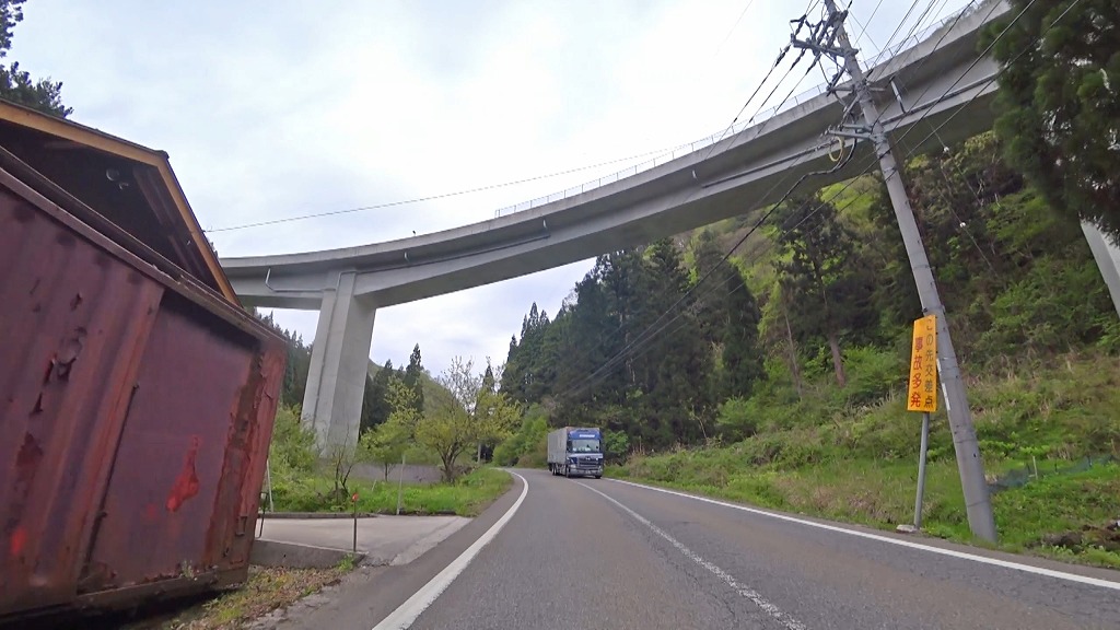大山環状道路の紹介ページでも振れていますが、E急カーブ区間になります。(0:15:55)