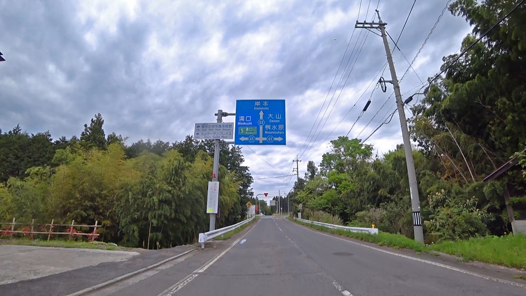 暫く進むと鳥取県道284号大山寺岸本線とのK交差点9(信号なし)が現れます。(0:48:00)