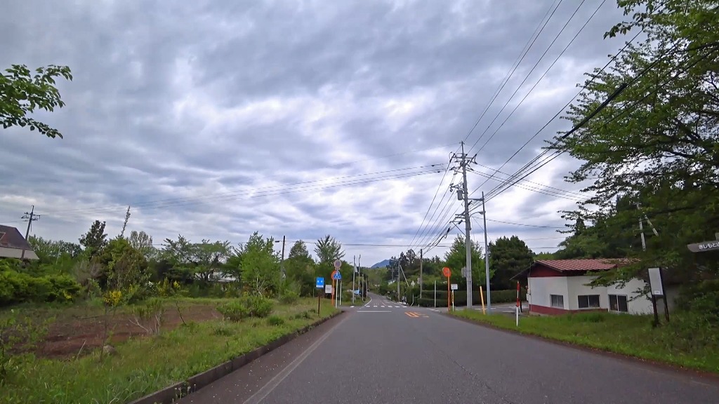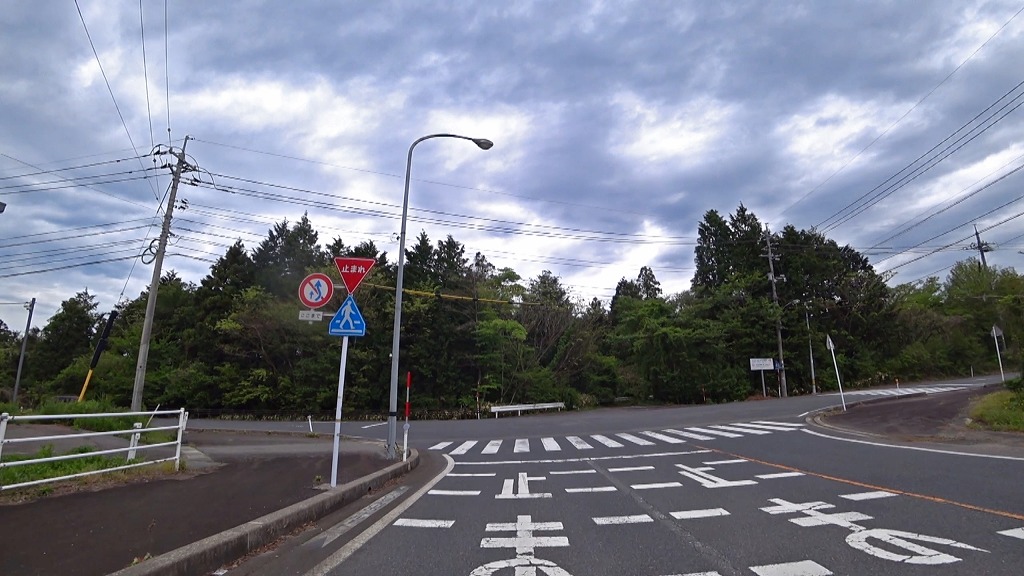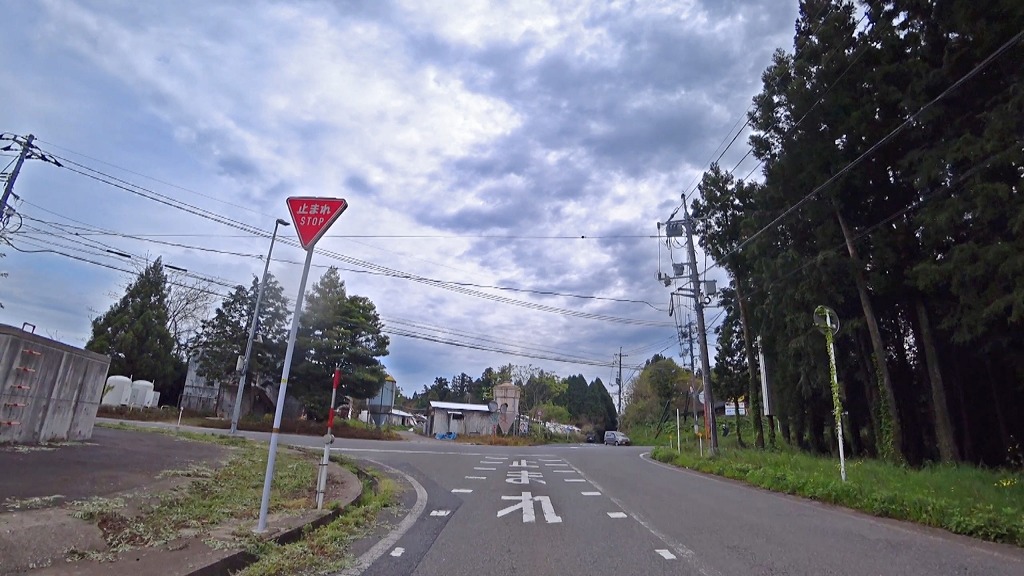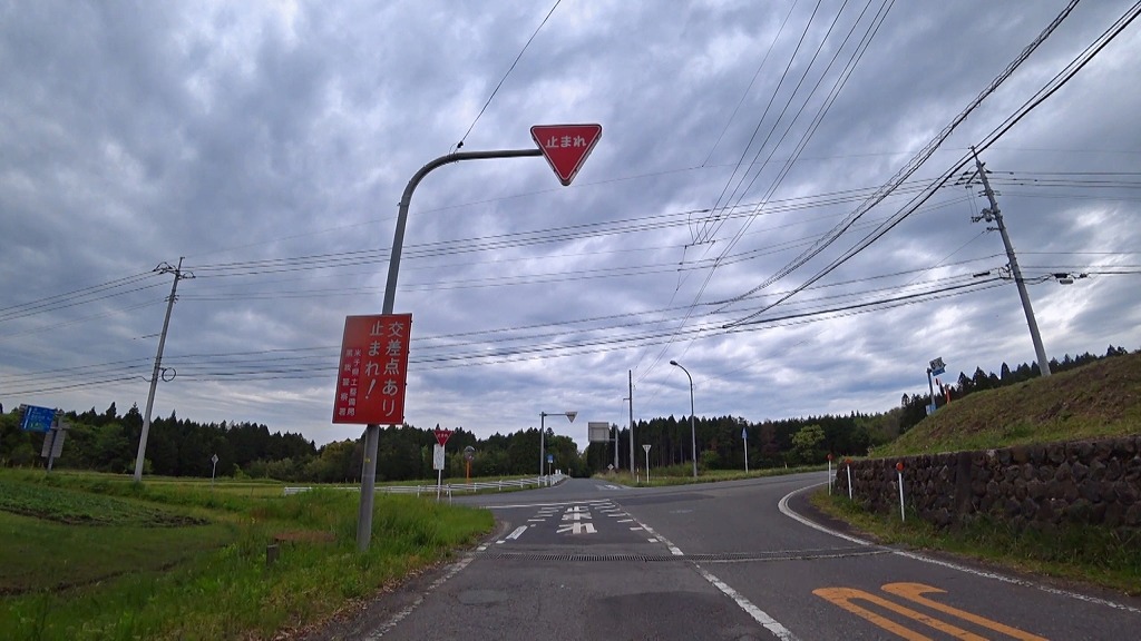 暫く進むと現れる大山環状道路とのD交差点3(信号なし)。(0:15:38)