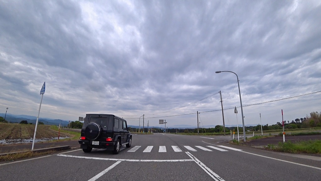 暫くするとG交差点5(信号なし)が現れます。(0:22:30)