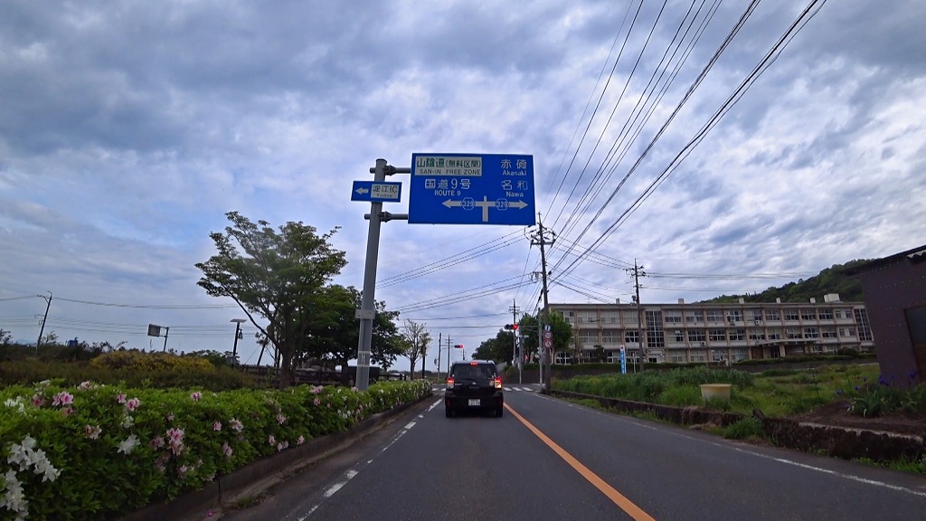 そんな快速路を結構走っていると現れる鳥取県道329号淀江琴浦線とのN交差点12(信号あり)。(1:03:40)