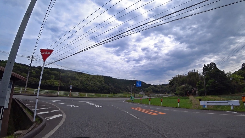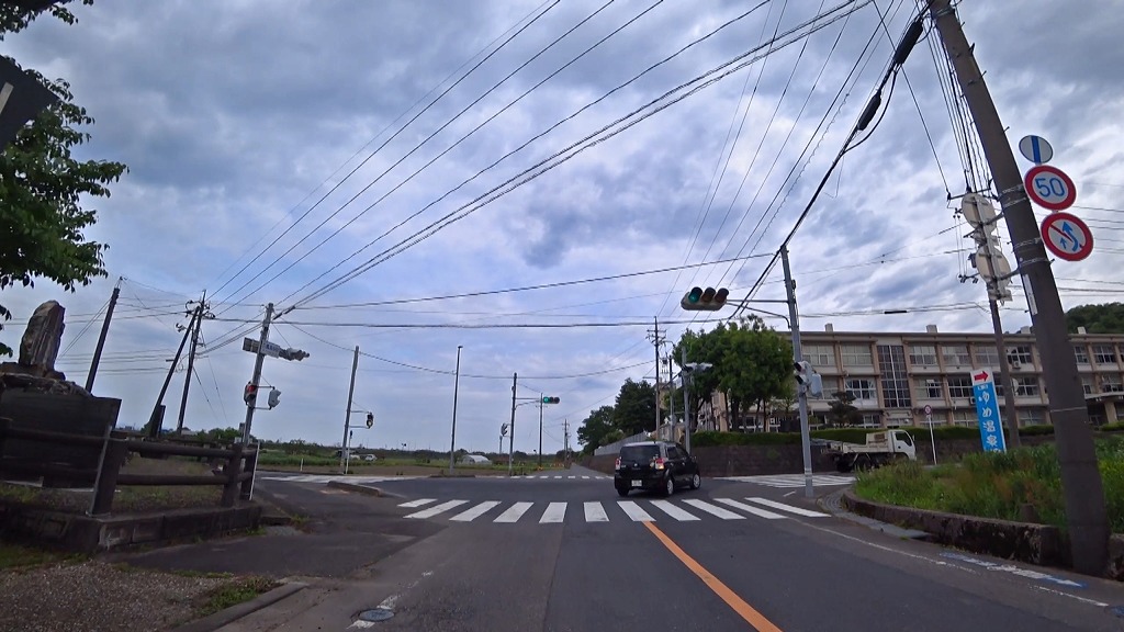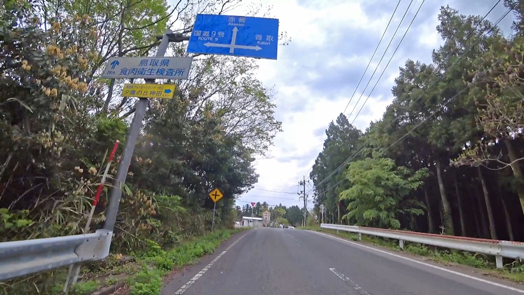 暫く進むと鳥取県道159号米子丸山線とのL交差点10(信号なし)が現れます。(0:50:35)