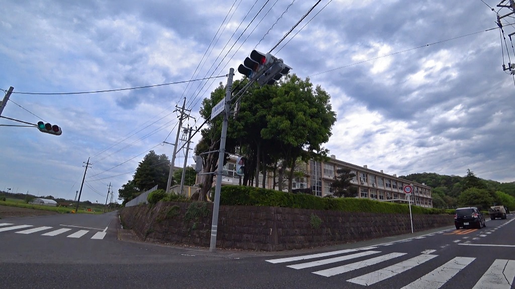 暫く進むと@交差点1(信号なし)が現れます。(0:07:18)
