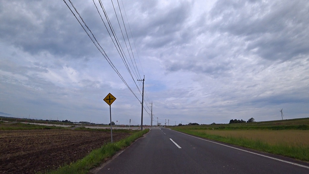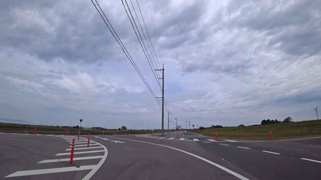 そんな走りやすい道を進んで行くとS交差点16(信号なし)が現れます。(1:17:20)