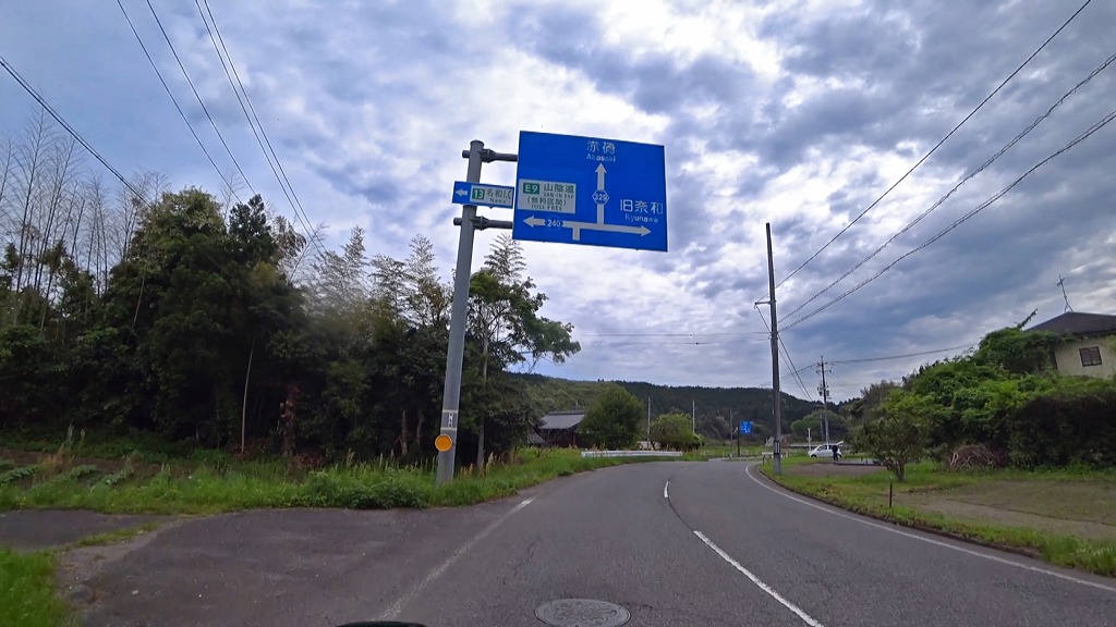 更に進んで行くと鳥取県道240号旧奈和西坪線とのQ交差点15(信号なし)が現れます。(1:14:12)
