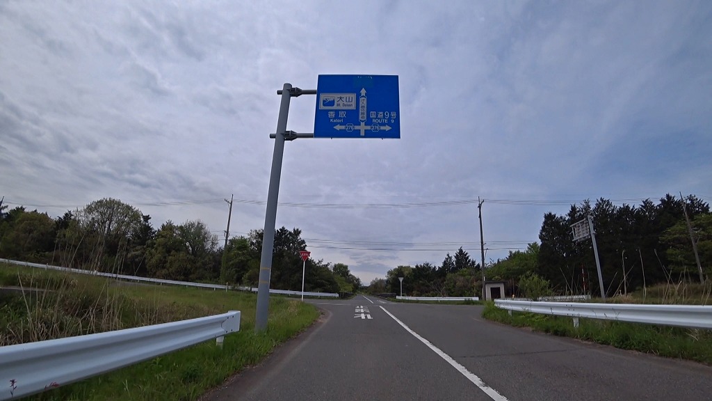 暫く進むと鳥取県道276号高橋松河原線との@交差点1(信号なし)が現れます。(06:15)