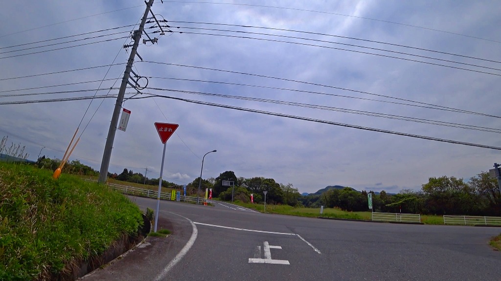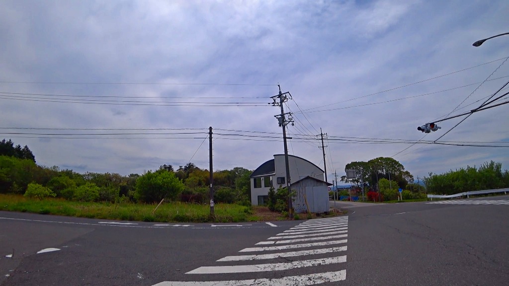 暫く進むと@交差点1(信号なし)が現れます。(04:14)