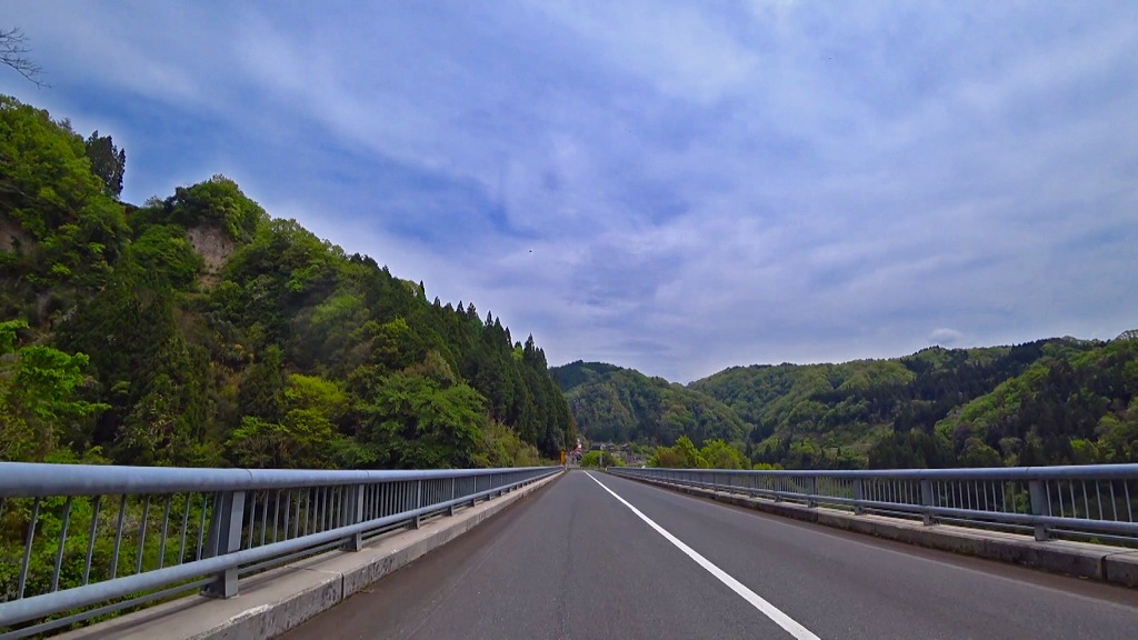 急カーブのブラインドコーナーからのD狭い橋が現れます。(11:10)