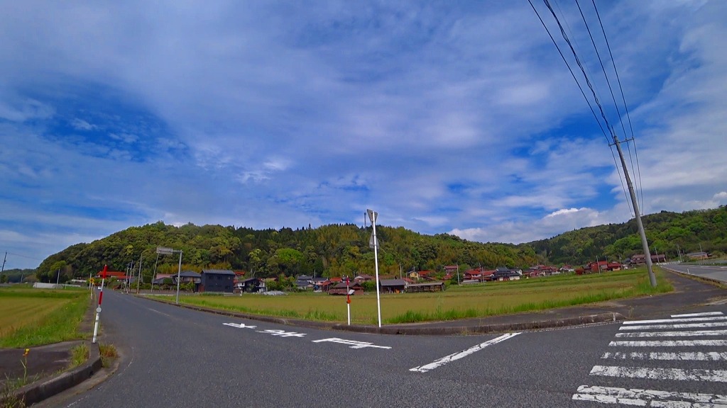 これまで山道でしたが、やっと農道っぽい風景になりました。