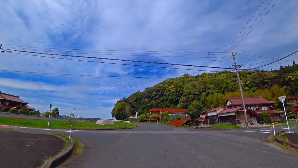 そして坂道を登った先にE交差点4(信号なし)が現れます。(12:29)