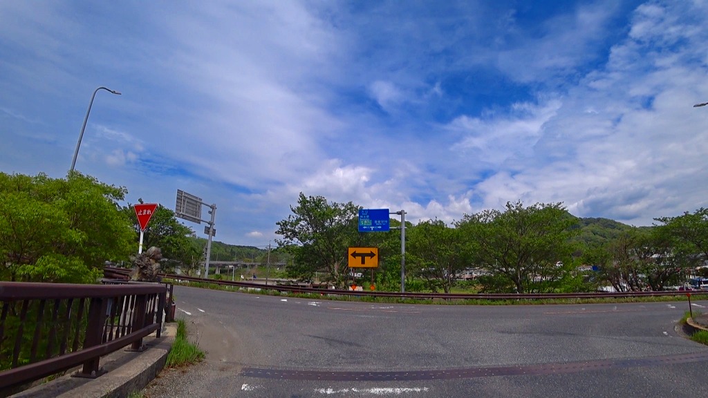 すると現れる鳥取県道160号福頼市山伯耆大山停車場線との@交差点1(信号なし)が現れます。(08:52)