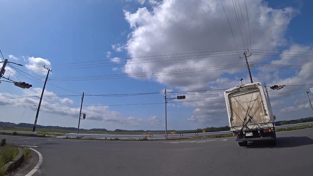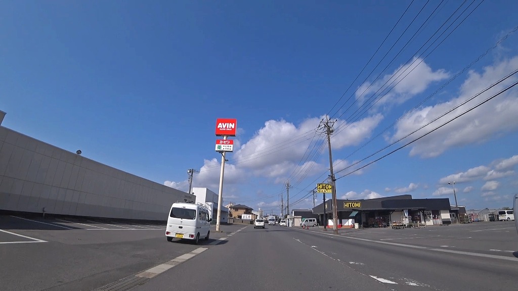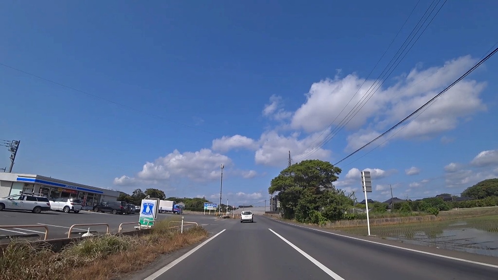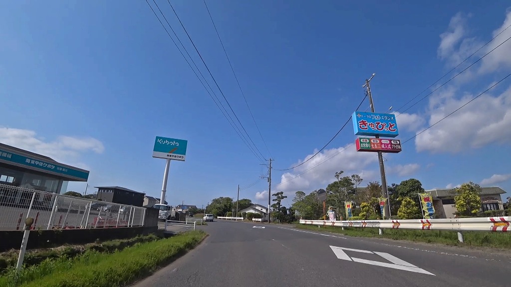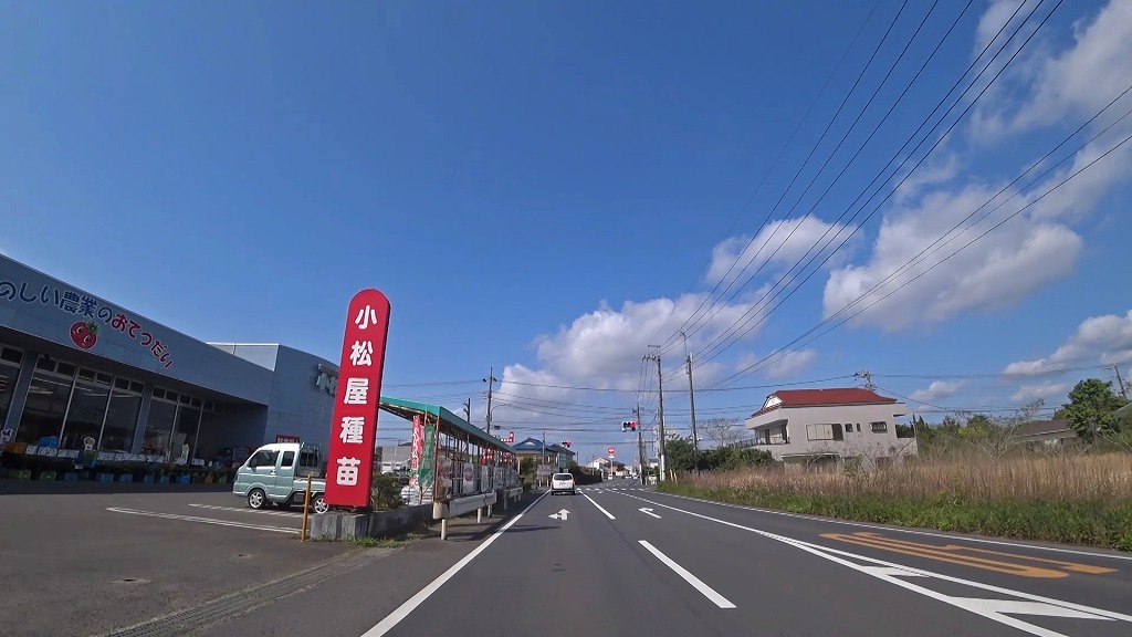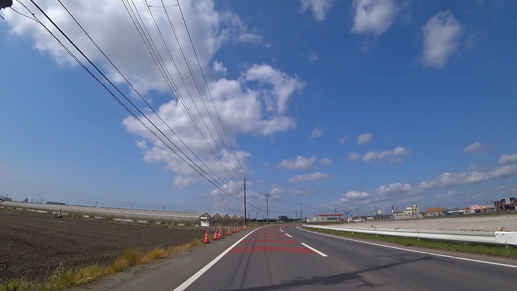 農道と言う事で田んぼの中を進む道です。が、丁度、国道126号の北側を平行に走っており、交通量も多く、農道沿いにはコンビニや飲食店もあり、農道と言うより主要道路の様な印象。