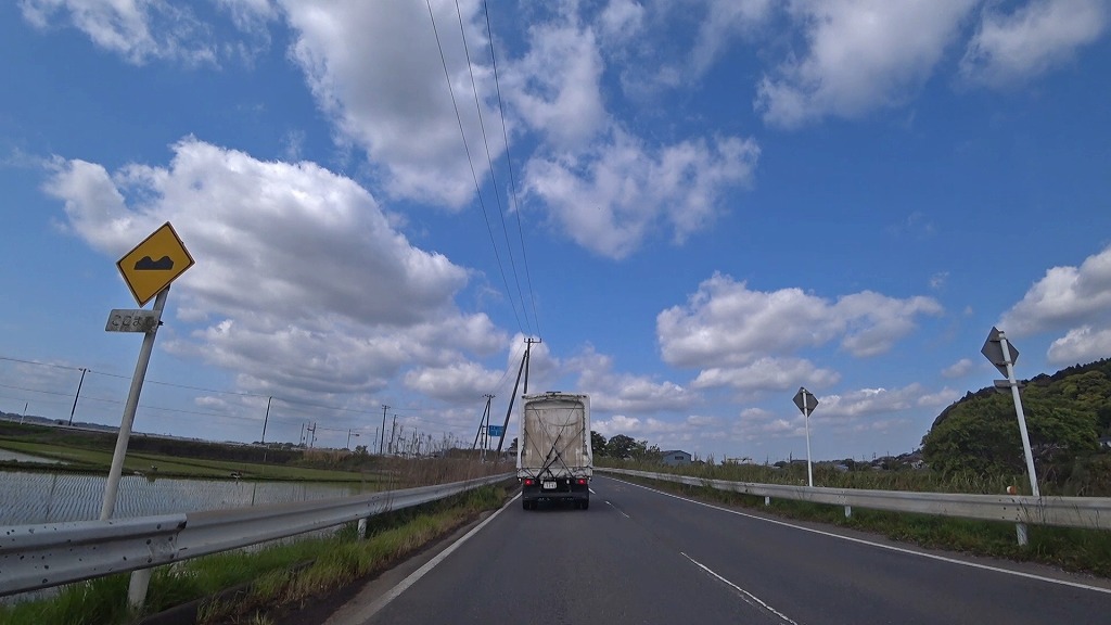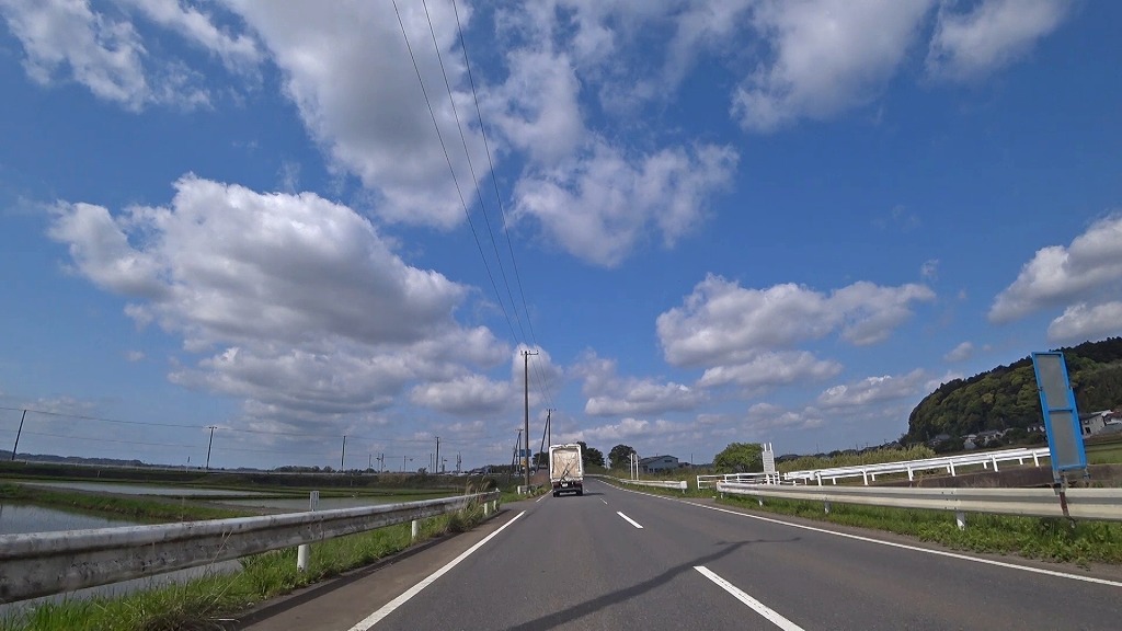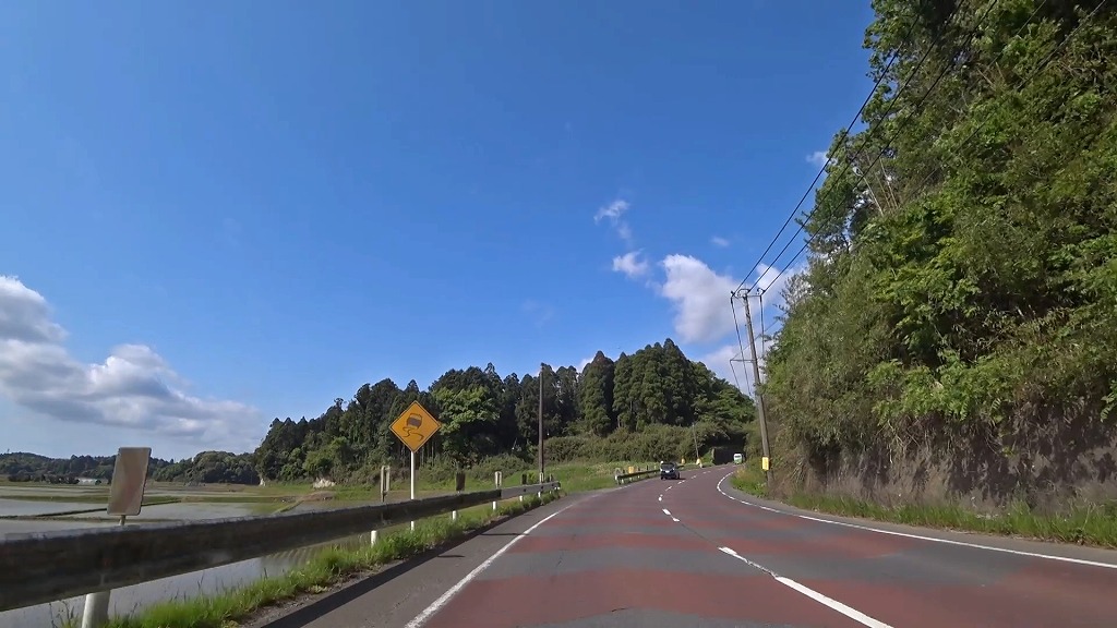 ただ、街灯が無く、ガードレールも無い場所が多く夜は怖そう。(田んぼに落ちそう)
