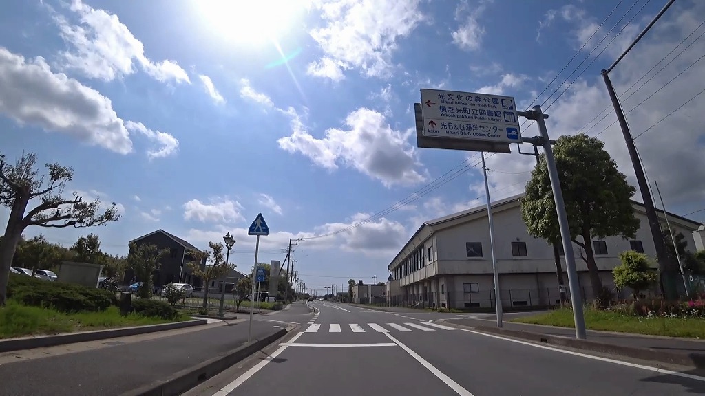 なぜスクールラインなのか不明ですが、横芝光町役場や図書館、体育館等が建ち並ぶ場所から海へと続く道です。
