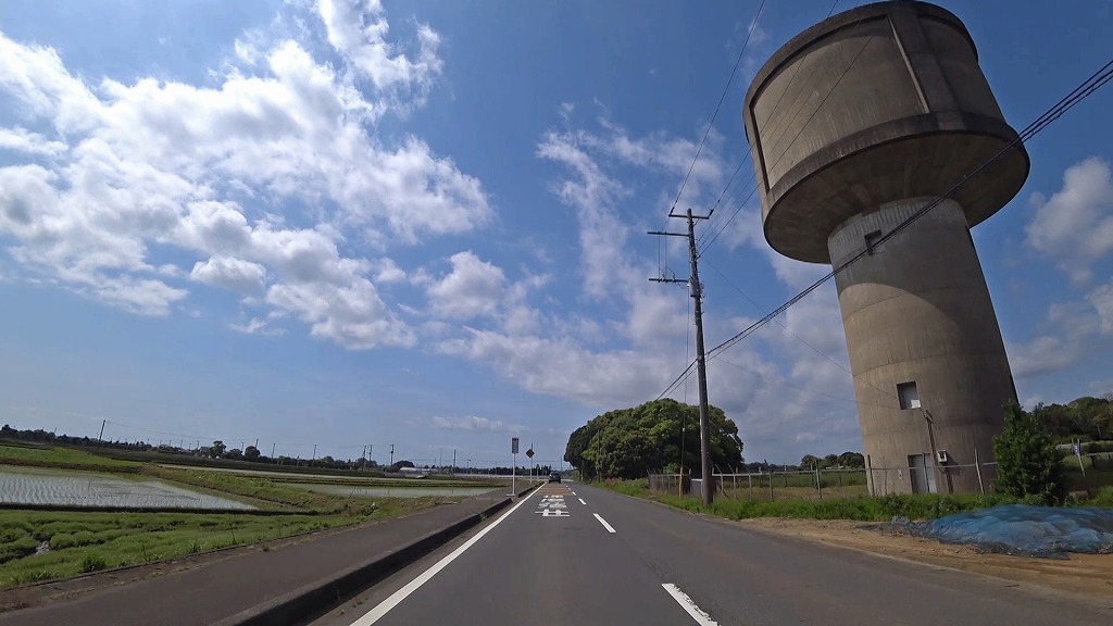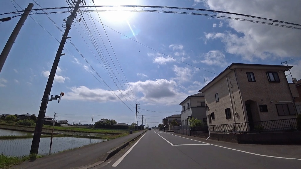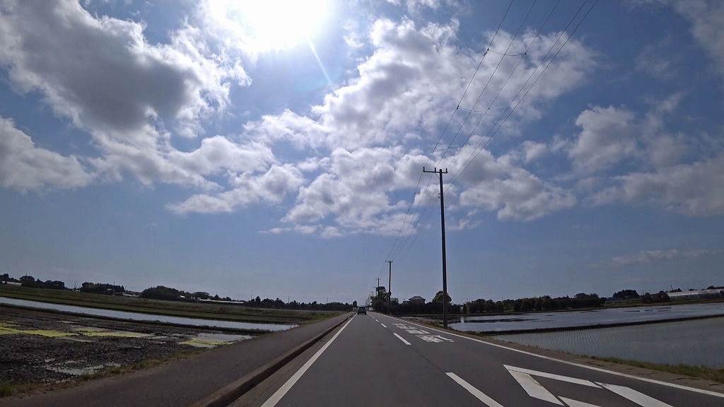 ここを過ぎると水田に囲まれた直線道路へ。