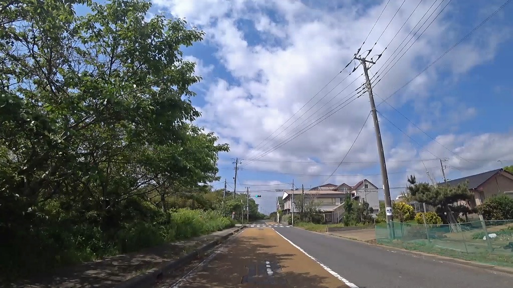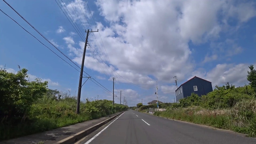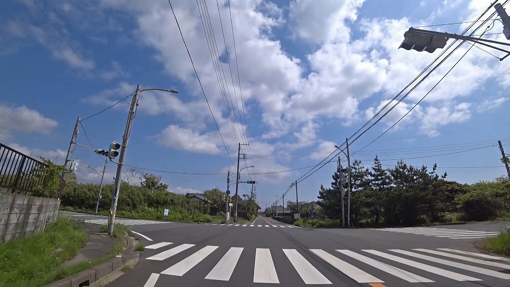 千葉県道30号飯岡一宮線(九十九里ビーチライン)と九十九里浜の間を平行に走るな道になっていますが、残念ながら海や海岸等は見えませんでした。