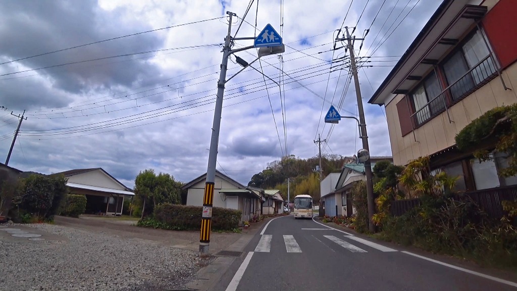 @狭路・見通しの悪いカーブ。歩行者等注意(06:41)