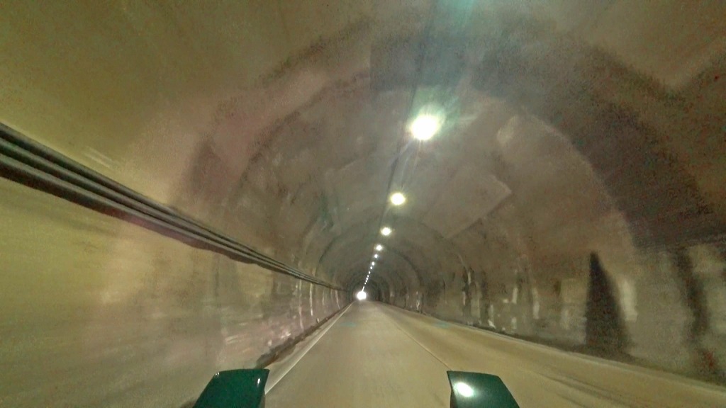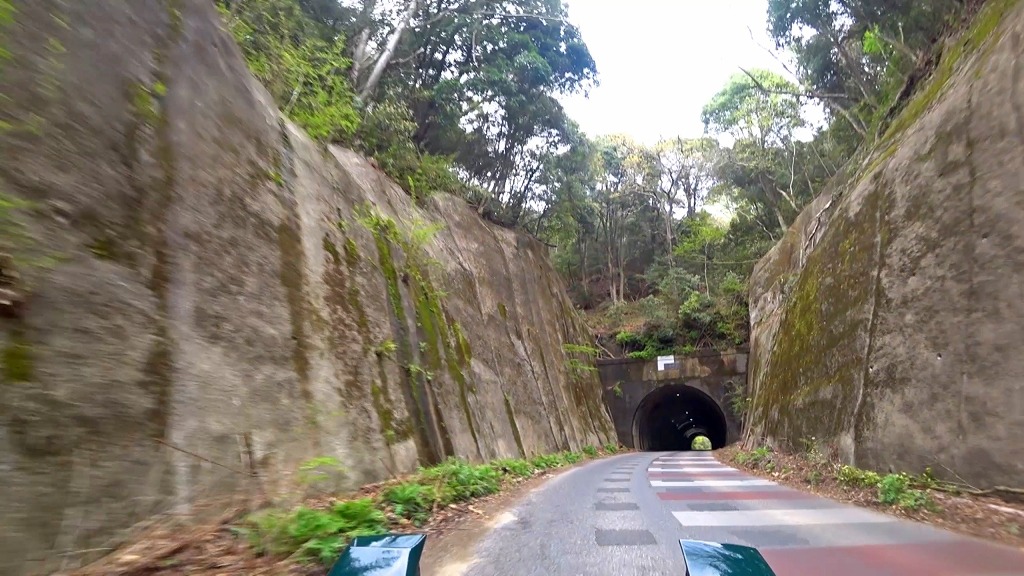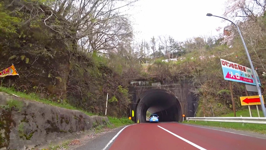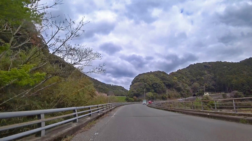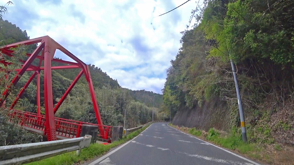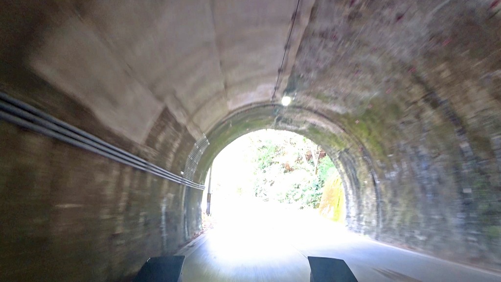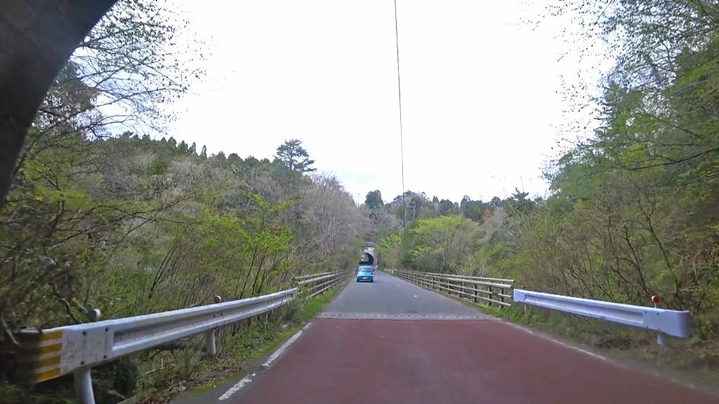 地図上ではほぼ直線に見えますが、短いトンネルはやや狭くうねったカーブ。そして続く橋もやや狭い場所なので注意。