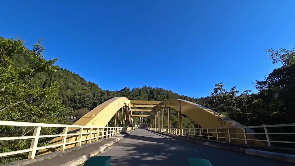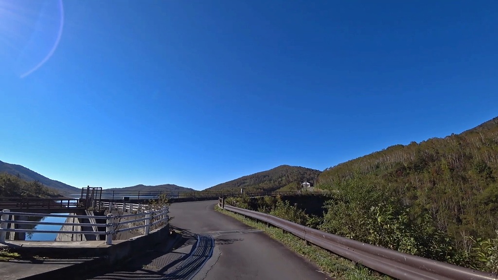 車両とバイクのすれ違いも難しそうです。対向車の様子を伺いながらダムを渡りましょう。