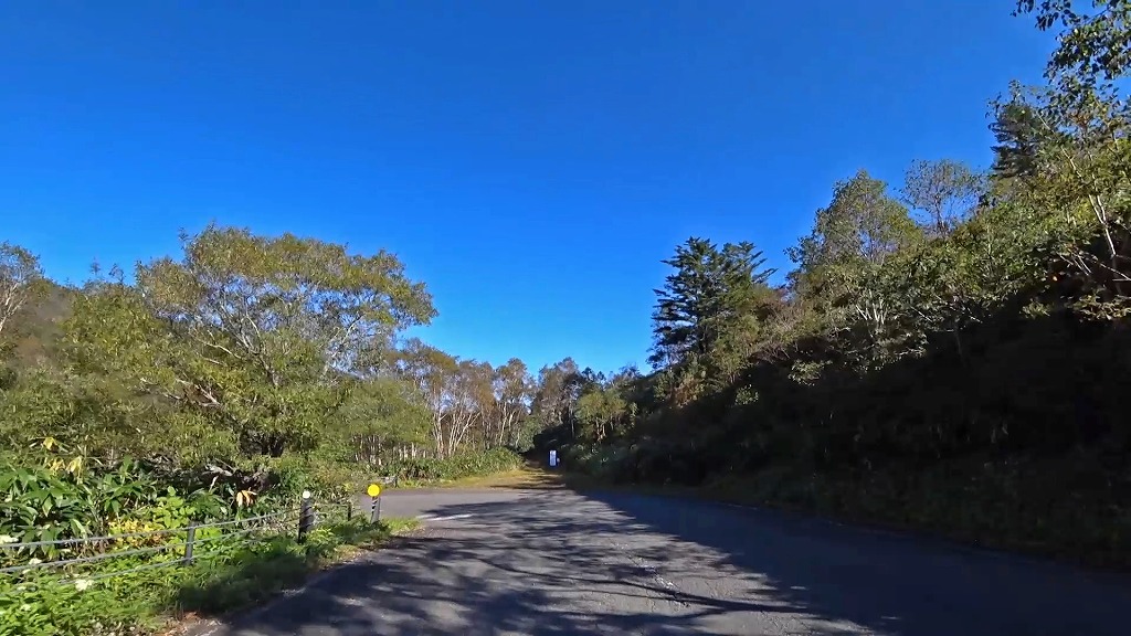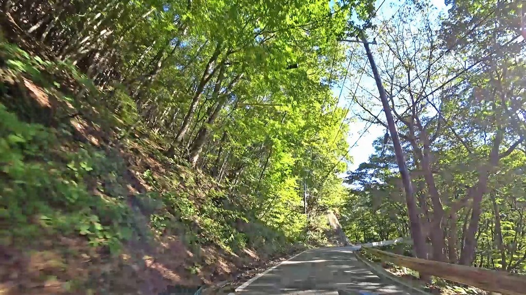 この辺りは狭かったりしますが、それでもこの先に花敷温泉や尻焼温泉がある為なのか、勾配は緩やかで車同士のすれ違いも問題ない印象。
