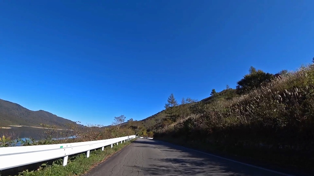 そんな道ですが険しい区間を乗り越え、野反湖の東側を走る道からの景色はとても素晴らしいです。