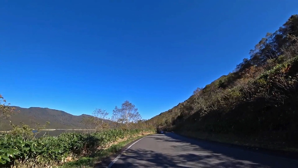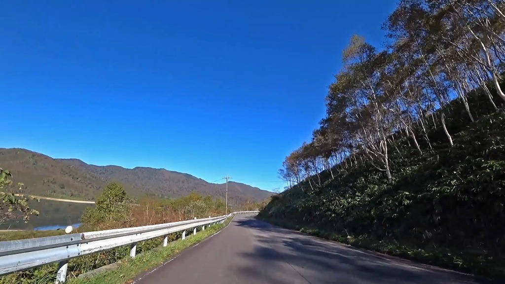そして、野反湖の東側を進む湖畔の道へ。