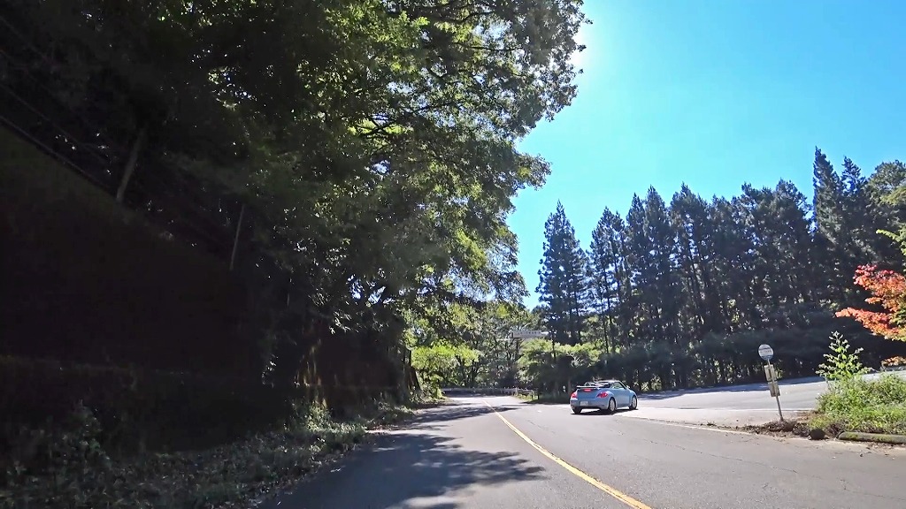 勾配はそれ程厳しくありませんが、休みなく急カーブが続く忙しい道です。