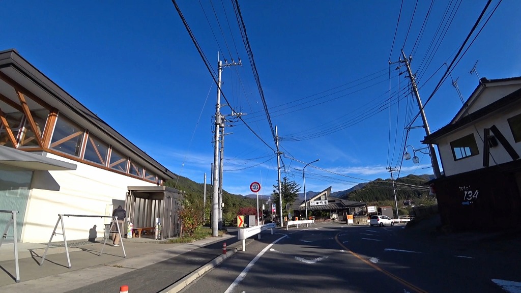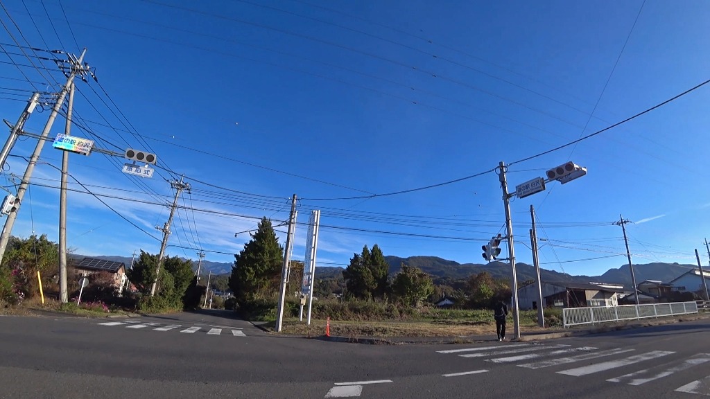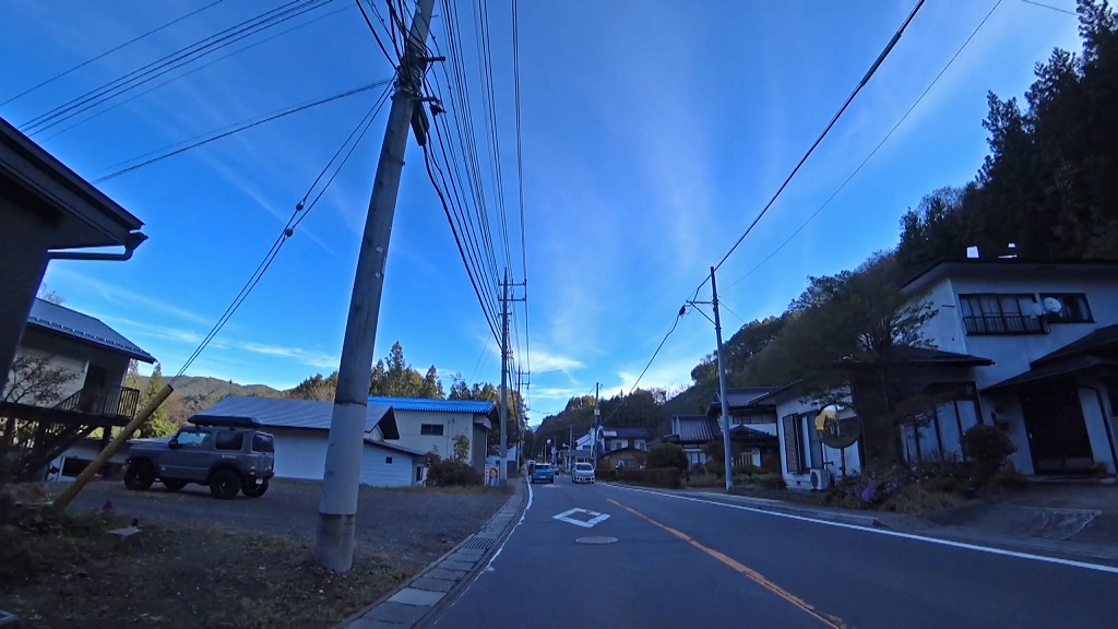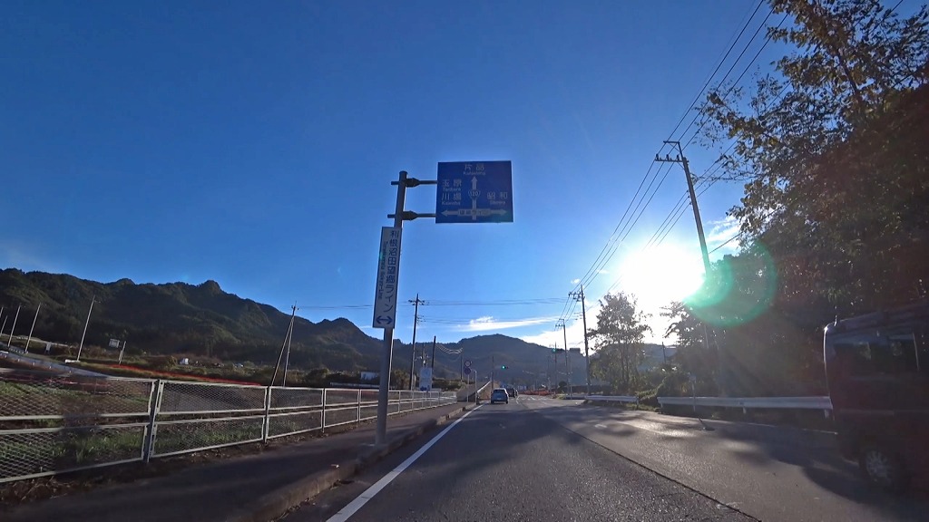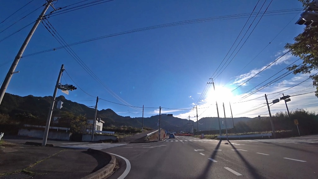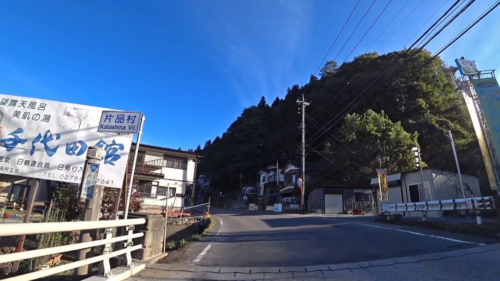 この交差点で交差する道は利根沼田望郷ラインで、ドライブはもちろんツーリングやサイクリングのコースとしても人気の道になります。(06:06)