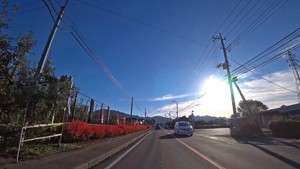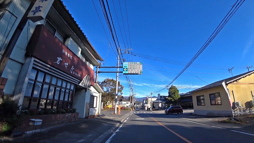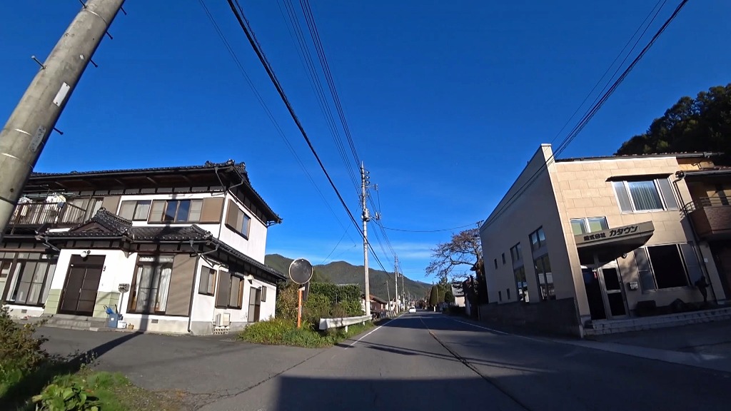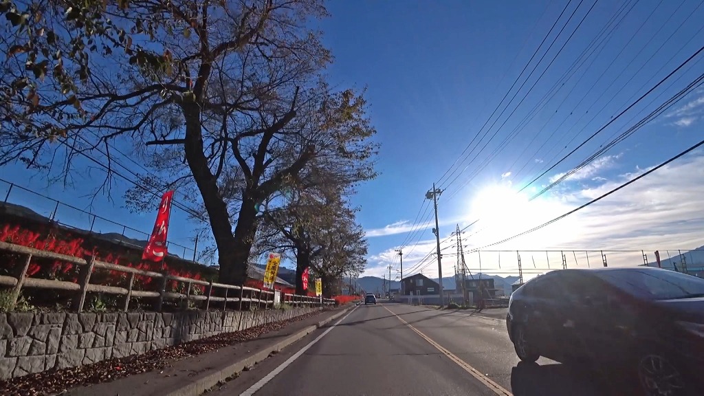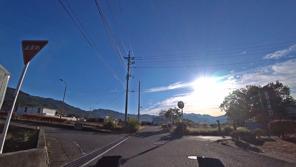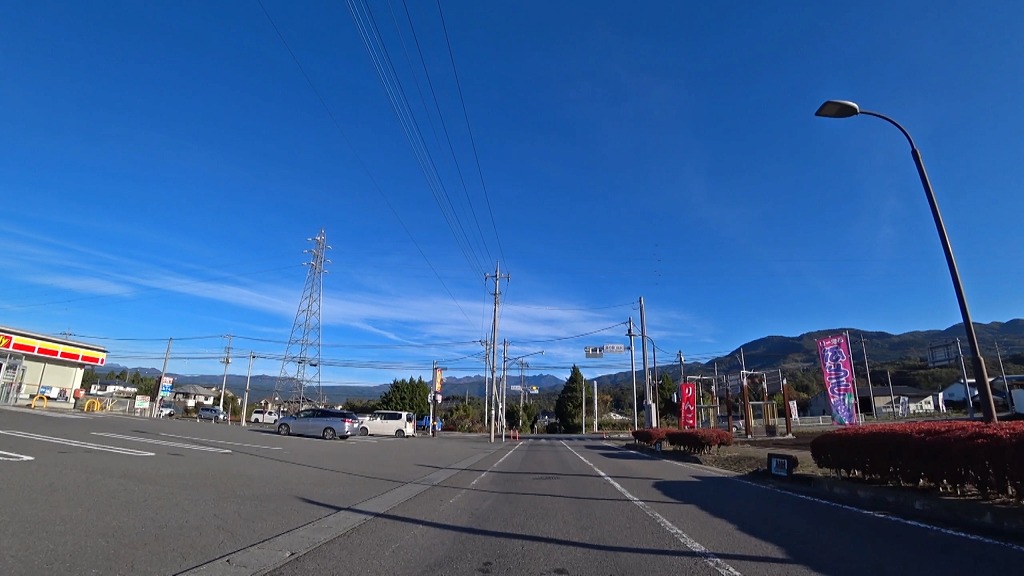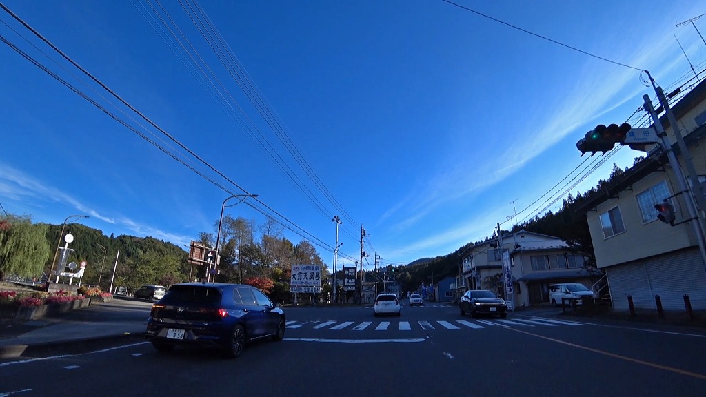 この交差点で交差する道は利根沼田望郷ラインで、ドライブはもちろんツーリングやサイクリングのコースとしても人気の道になります。(06:06)