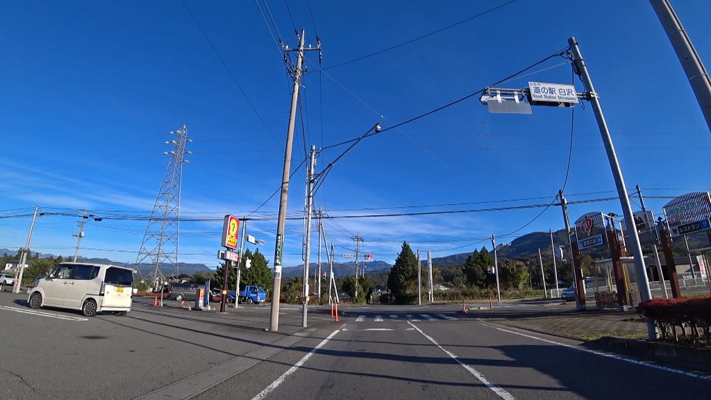 国道120号との交差点@道の駅 白沢交差点が現れます。(02:20)