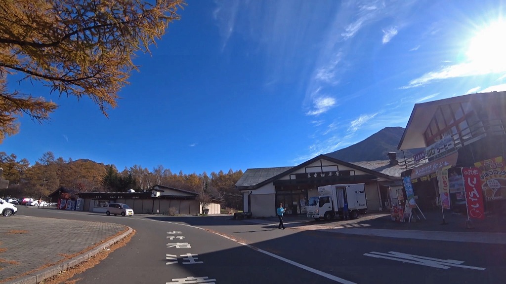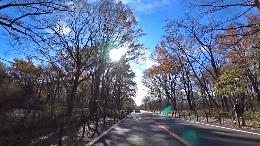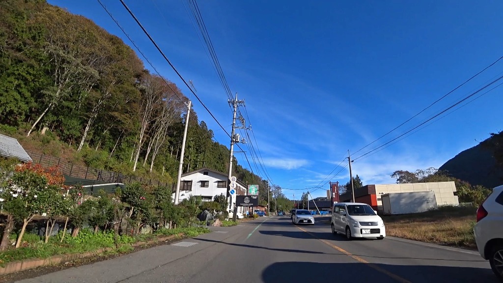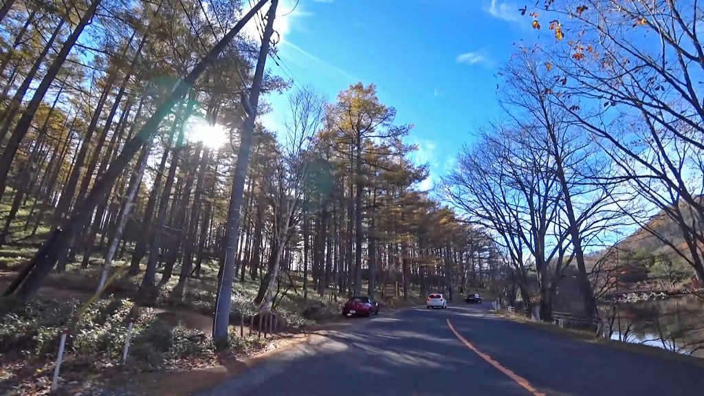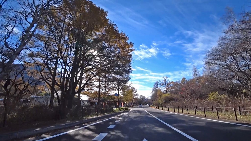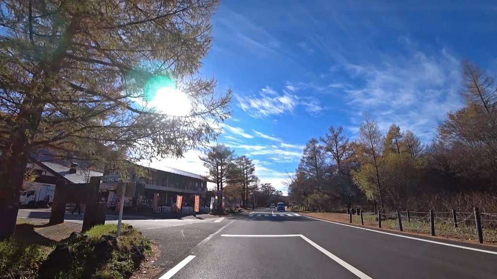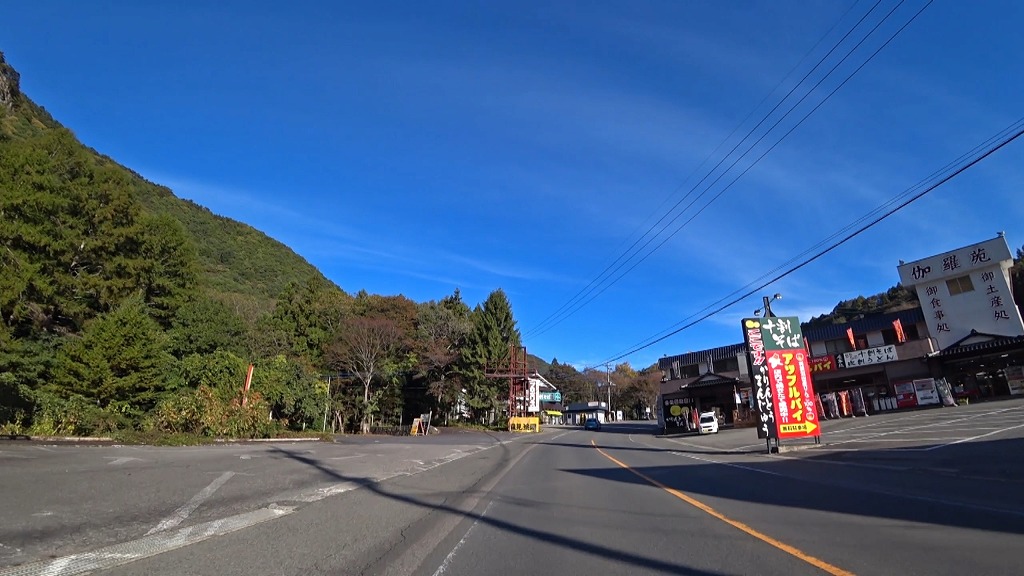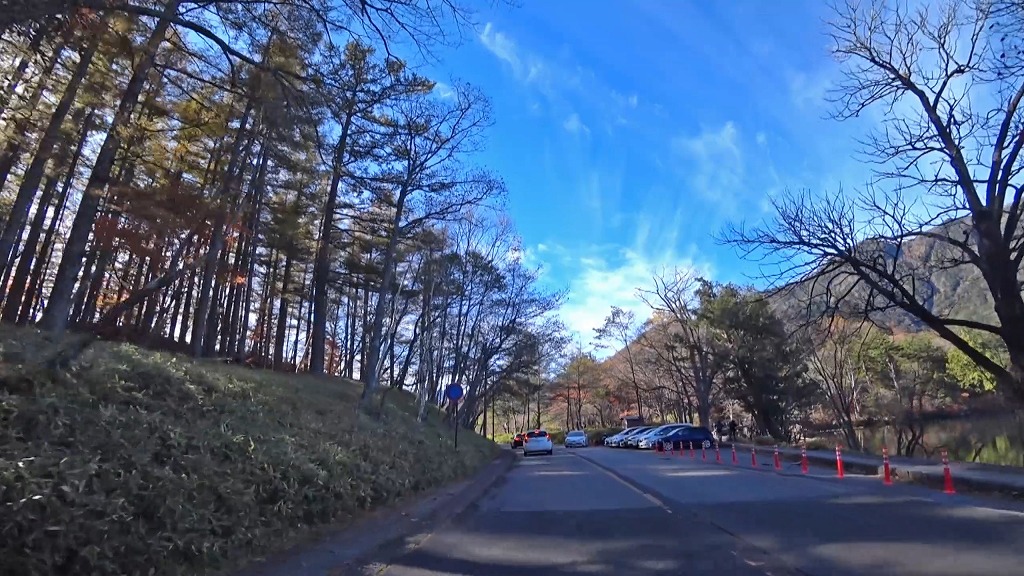 今回、朝の早い時間帯で人は居ませんが、紅葉シーズンや休日の昼はどは、観光客が多く、駐車場に出入りする車や観光バス。道路を歩く。また横断歩道の無い場所を横断する様な歩行者もいるので十分に注意して下さい。