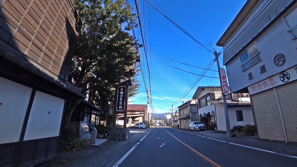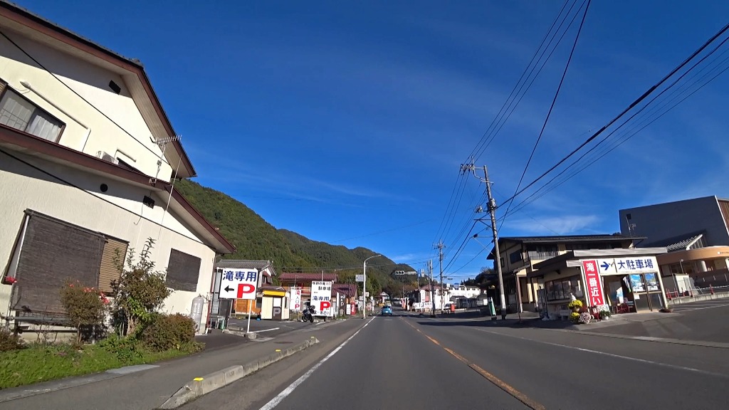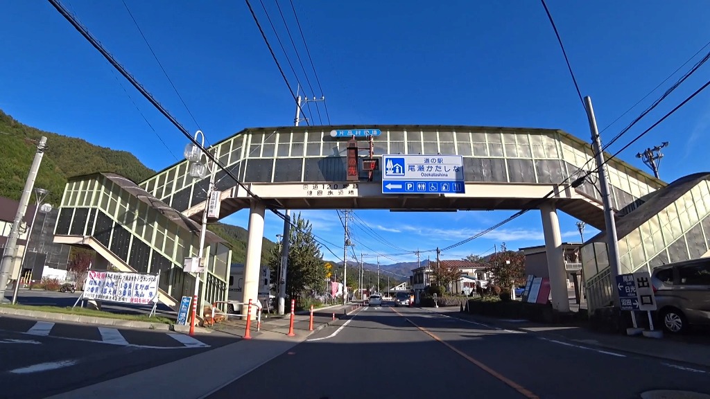 直ぐにH道の駅 尾瀬かたしなや村役場、温泉や旅館などが建ち並ぶ場所へ(26:43)