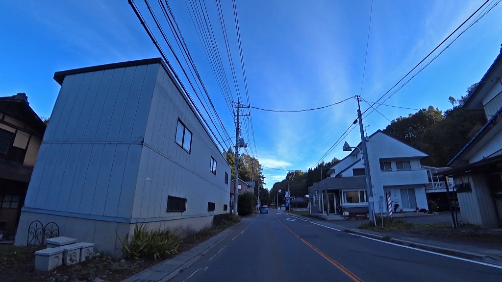 この辺りも、住宅や店舗が建ち並び、道との距離も近いのでF歩行者注意(24:31)