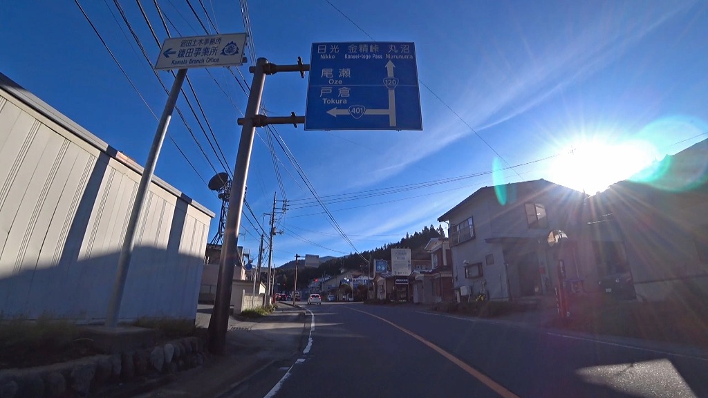 少し進んだ所にある、鎌田交差点を左に進むと尾瀬方面になります。