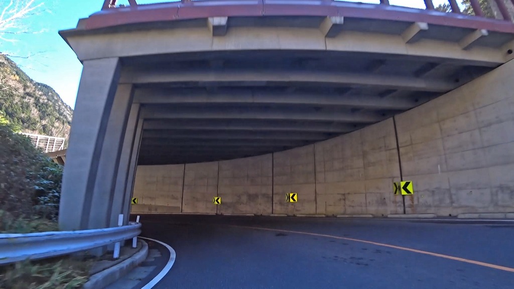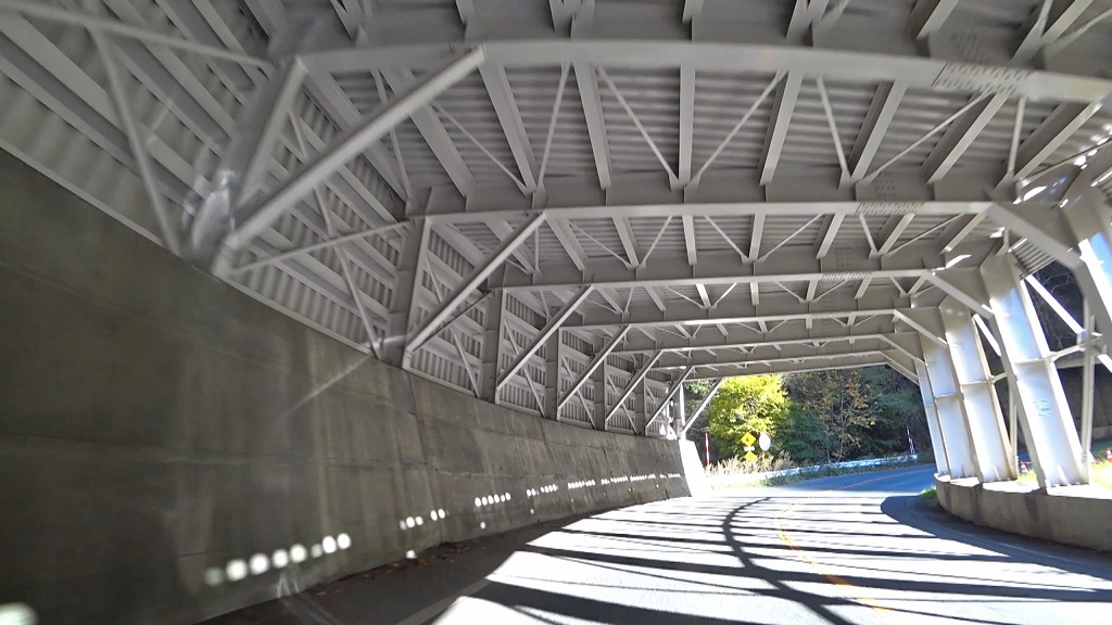特にスノーシェッドが連続する場所では、スノーシェッド前後に厳し目のカーブがあるので注意。