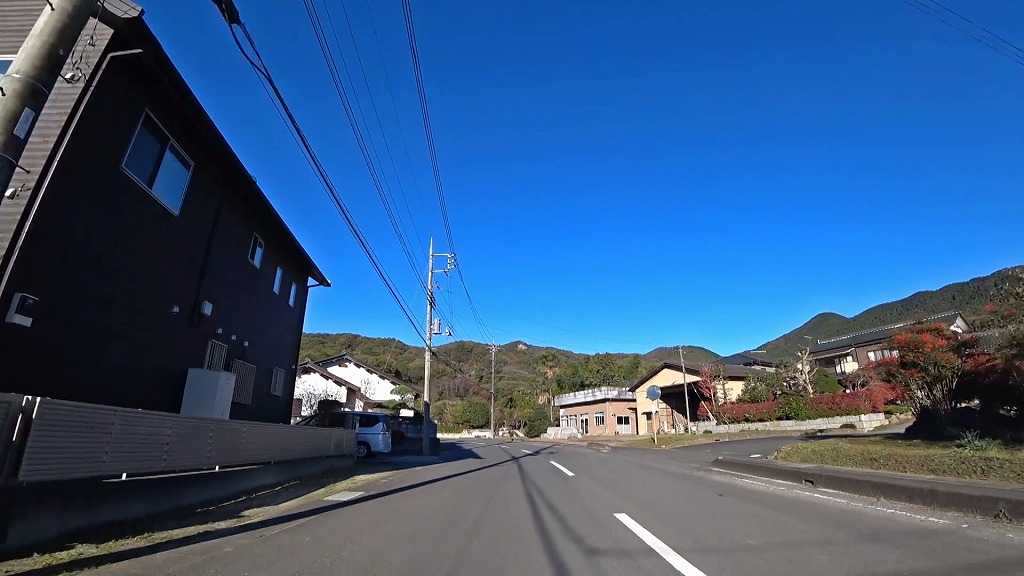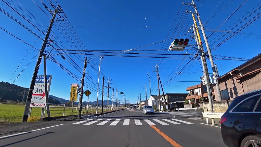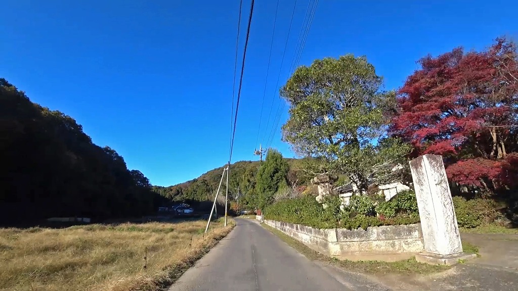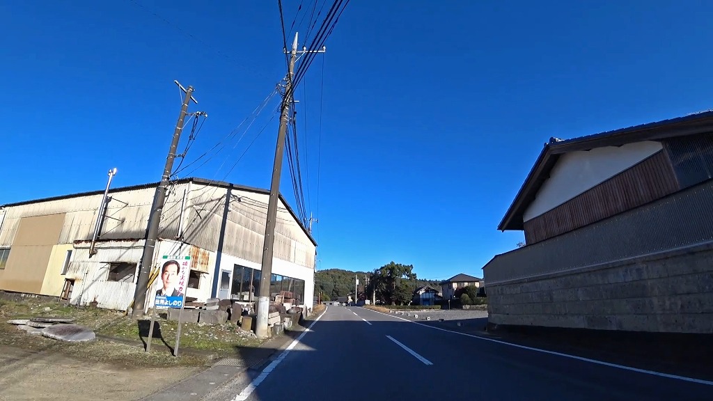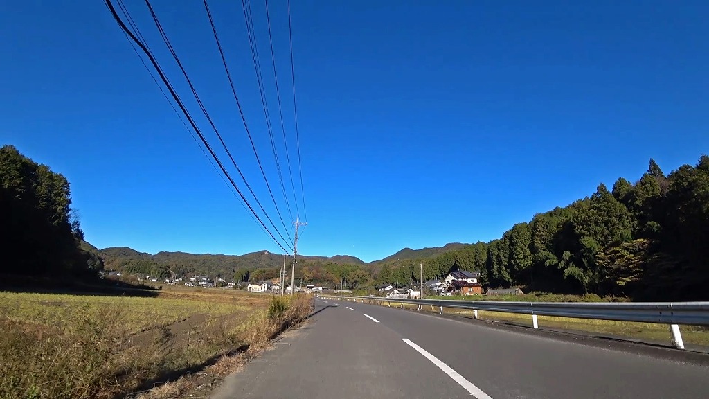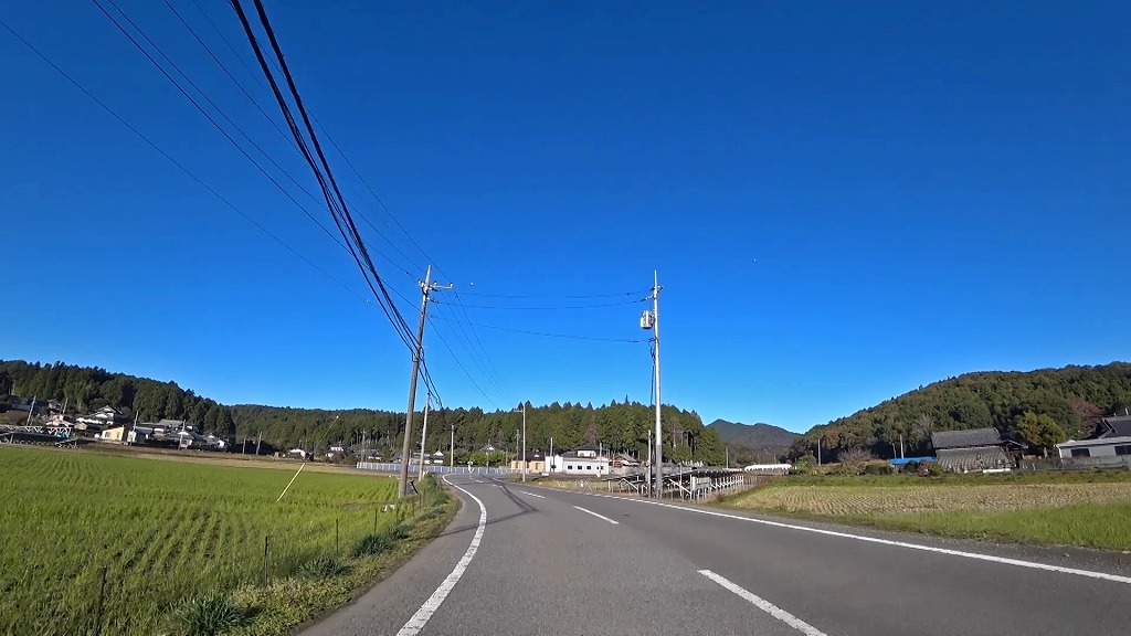 民家や工場、田畑の広がる道になります。