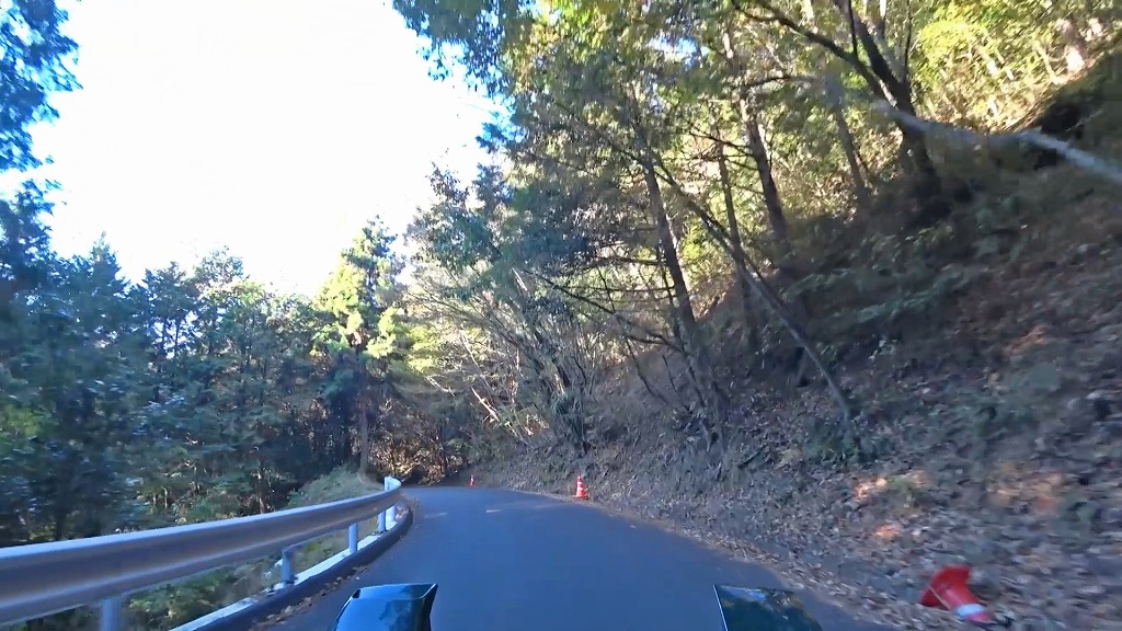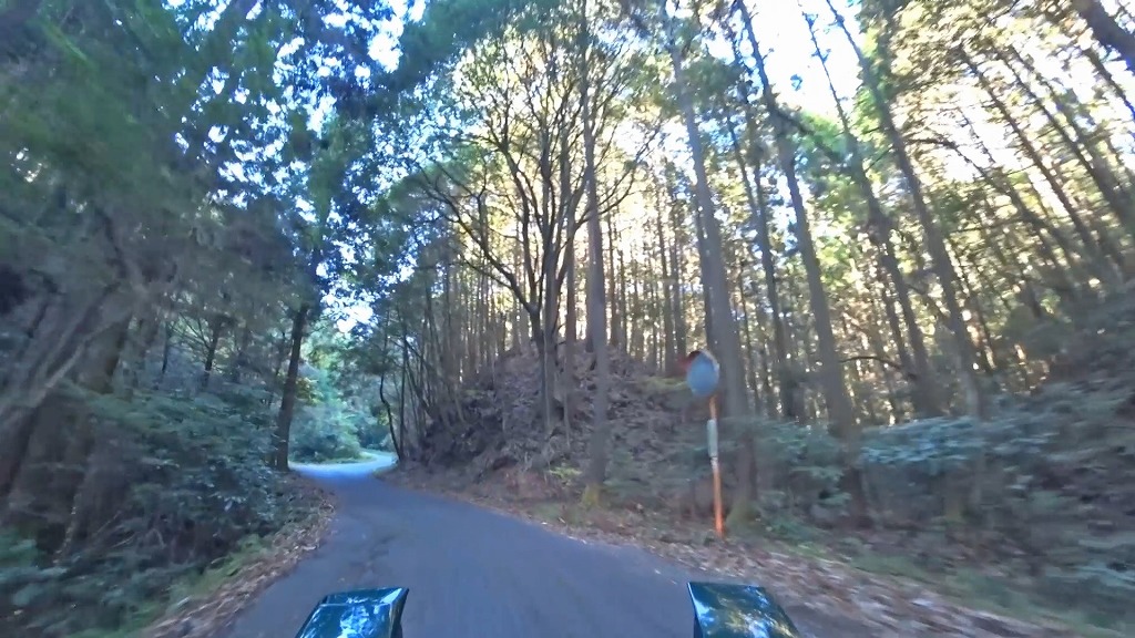 林道は全線舗装の道ですが、狭路かつ見通しの悪いカーブの続く道です。