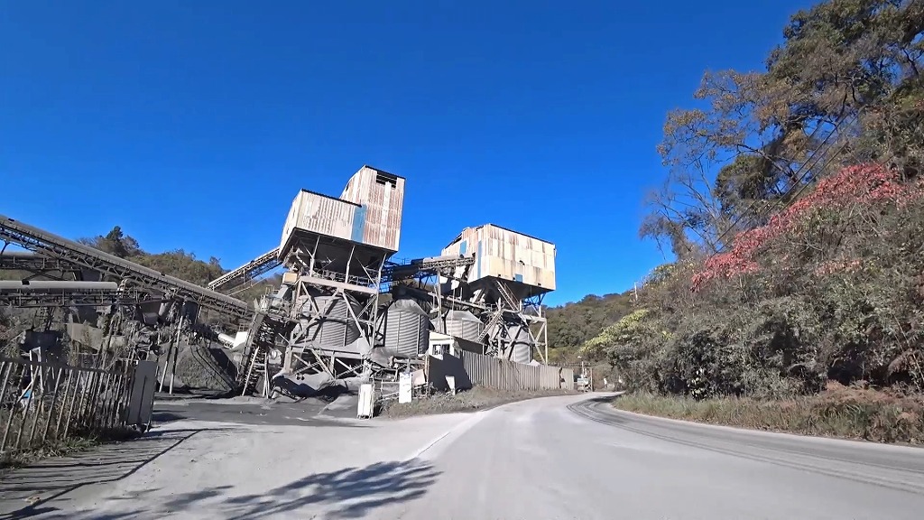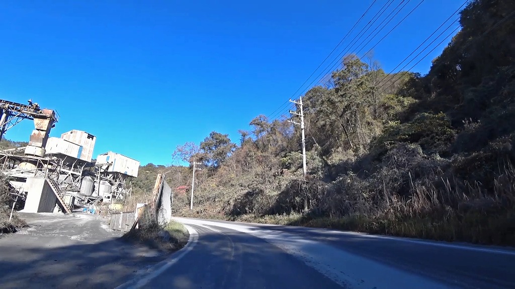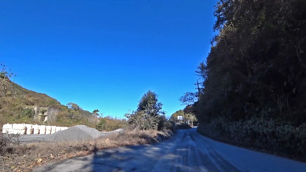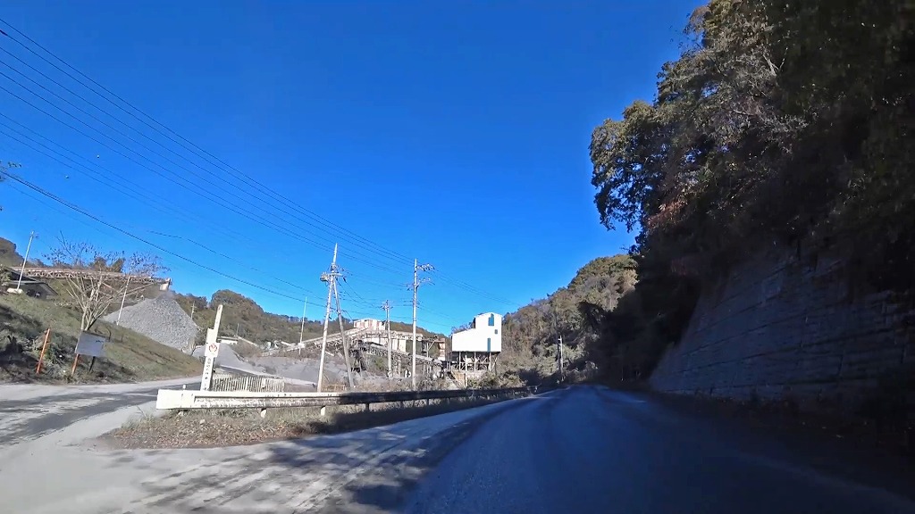 採石・砕石場があり、ダンプカーが走るせいか、路面には砂の様な堆積物。