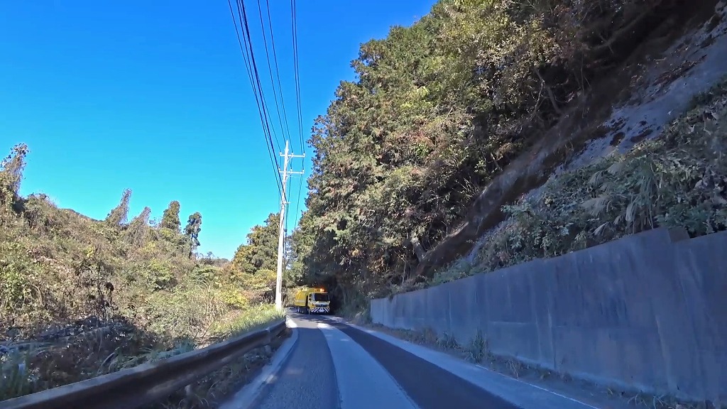 また、ダンプカーも通る場所で一部狭路があり、すれ違いが出来ない個所もありました。対向車には十分注意して走行する必要があるかもしれません。