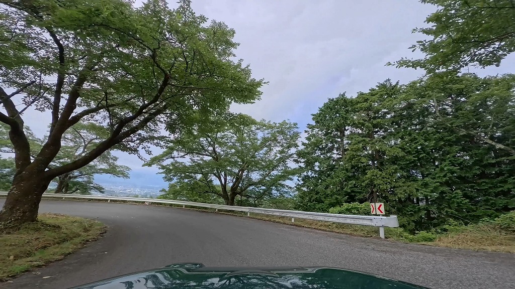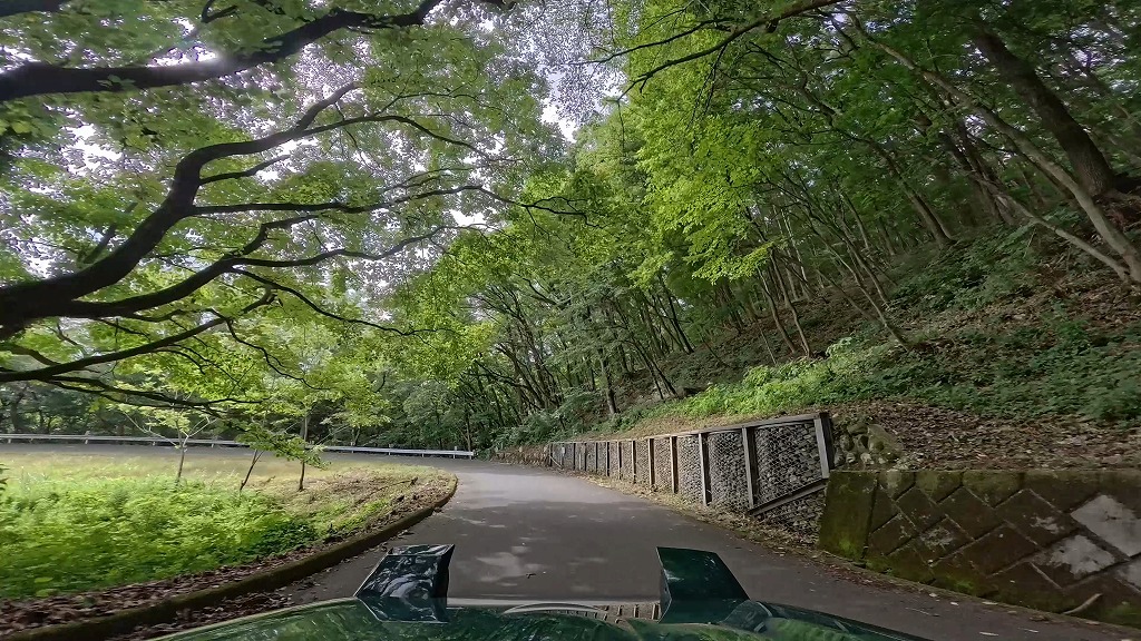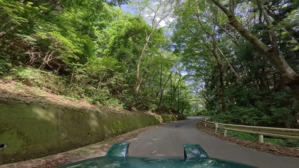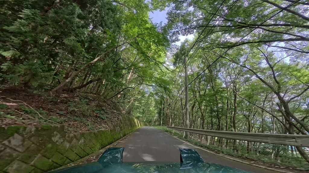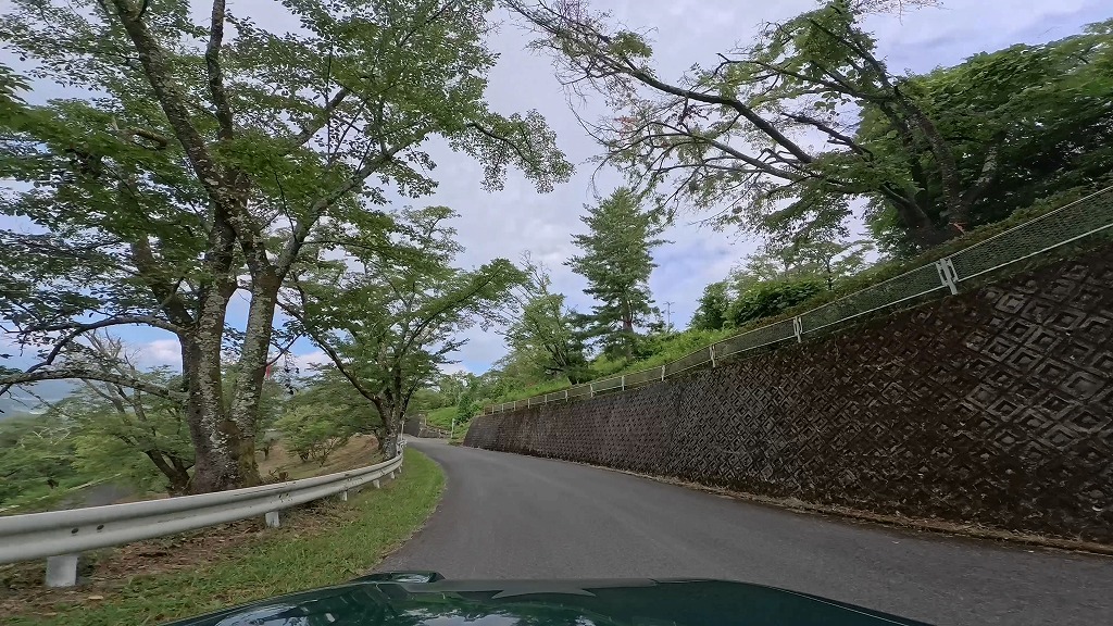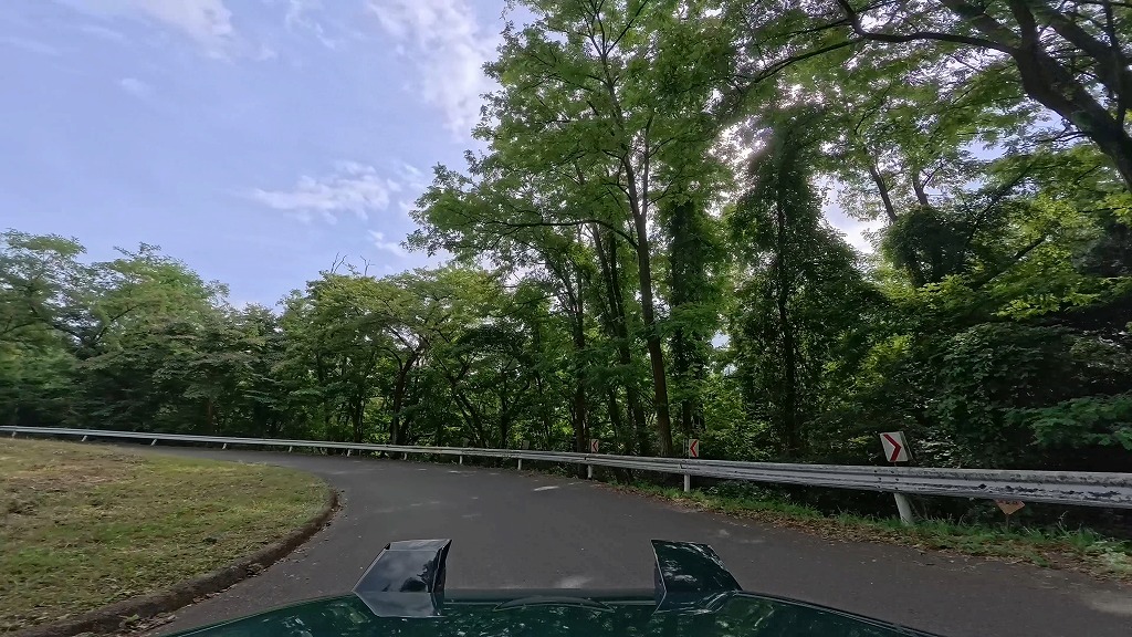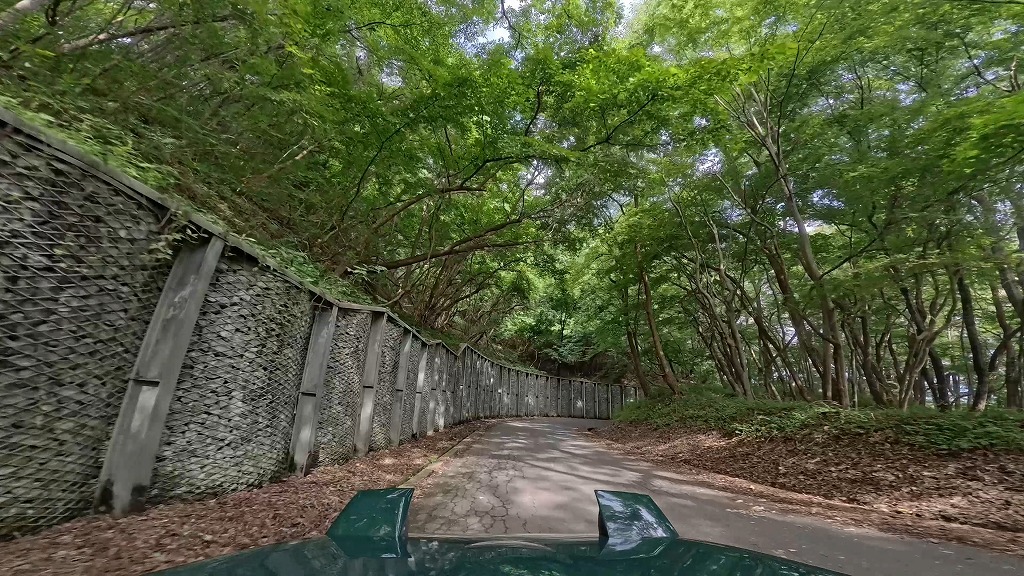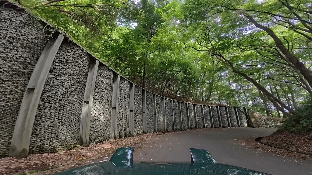 比較的整備された林道ですが、道幅が狭い場所や、見通しの悪い急なカーブが続く区間があります。対向車や自転車、バイクとすれ違う際は、十分注意して走行しましょう。